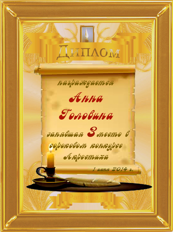 Диплом за 3 место в 110 конкурсе АКРОСТИХА (Альтернатива)! ПОЗДРАВЛЯЮ!
