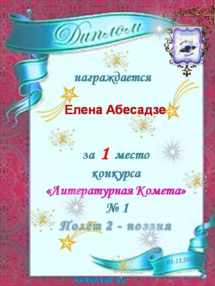Поздравляю с занятым 1 местом в конкурсе "ЛитКомета - Полёт № 77" - Номинация Поэзия!