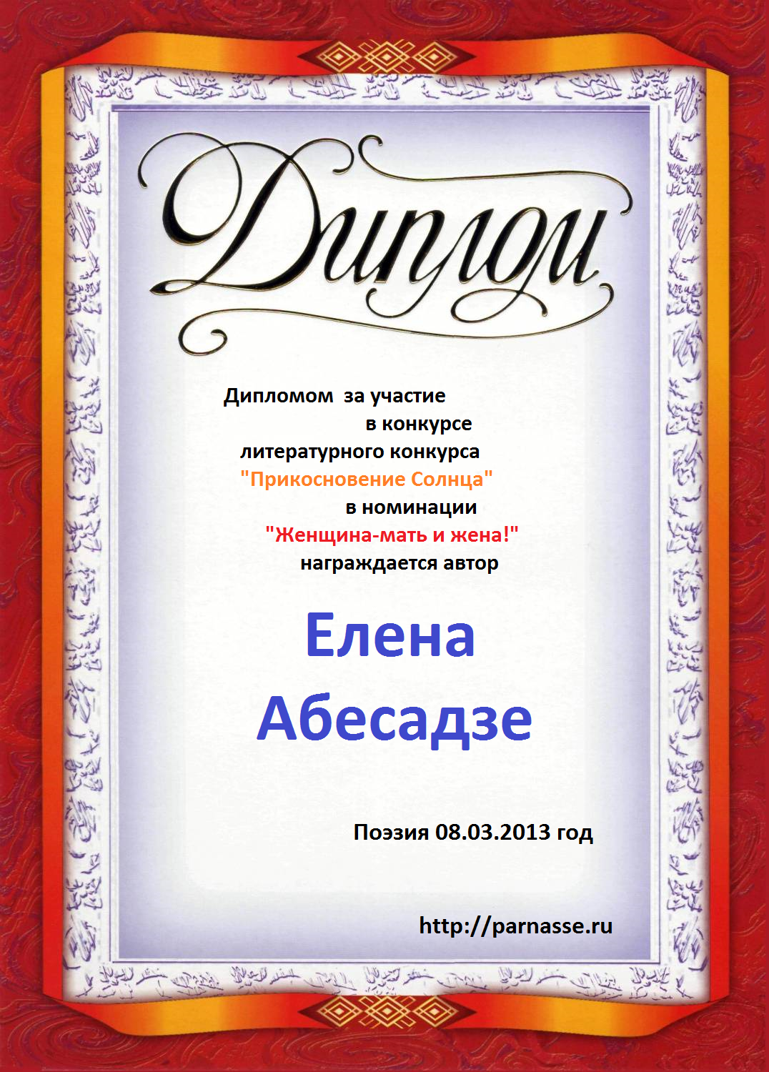 Диплом в конкурсе поэзии "Прикосновение Солнца"