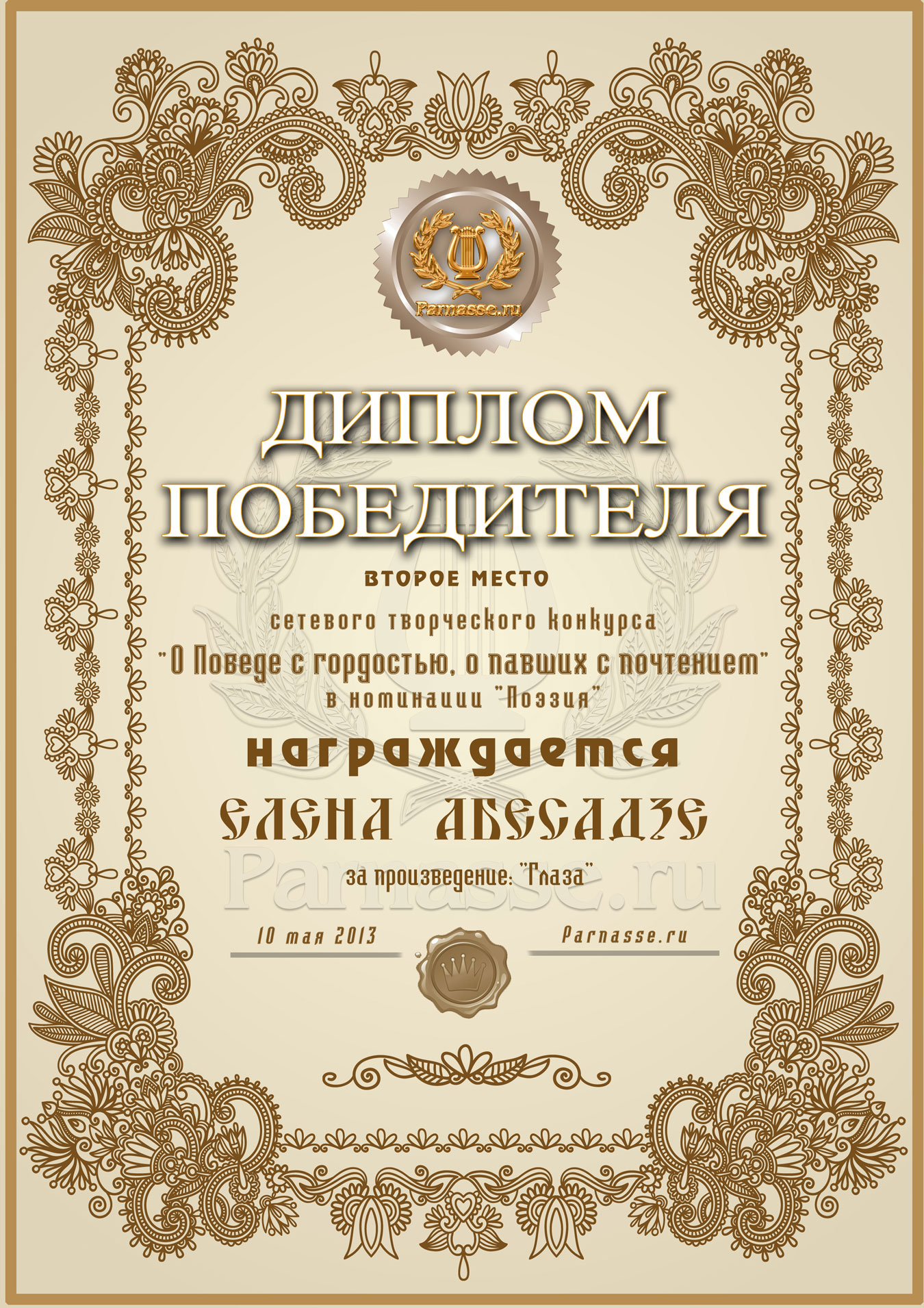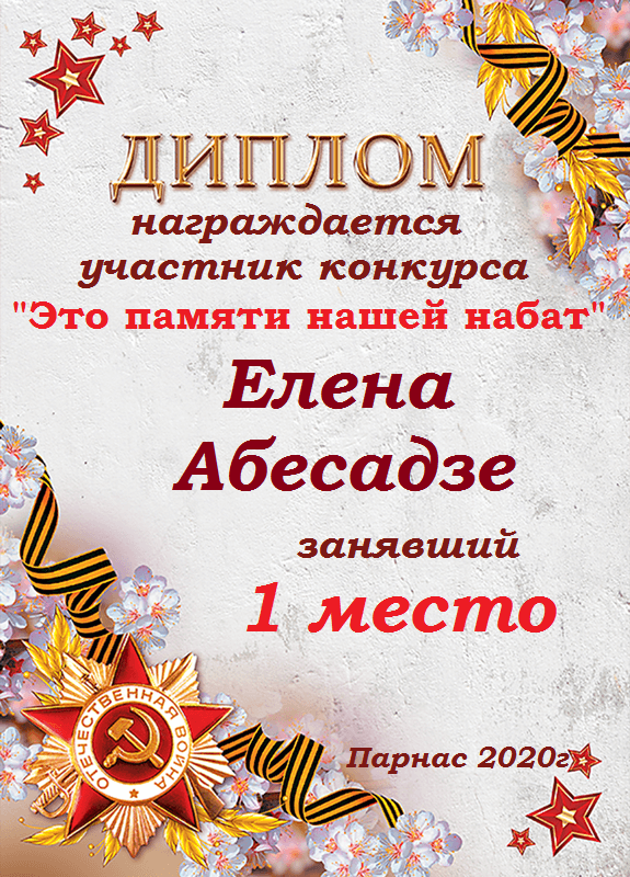 Диплом победителя конкурса "О Победе с гордостью, о павших с почтением"