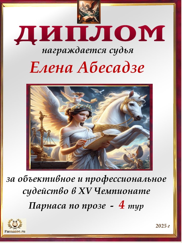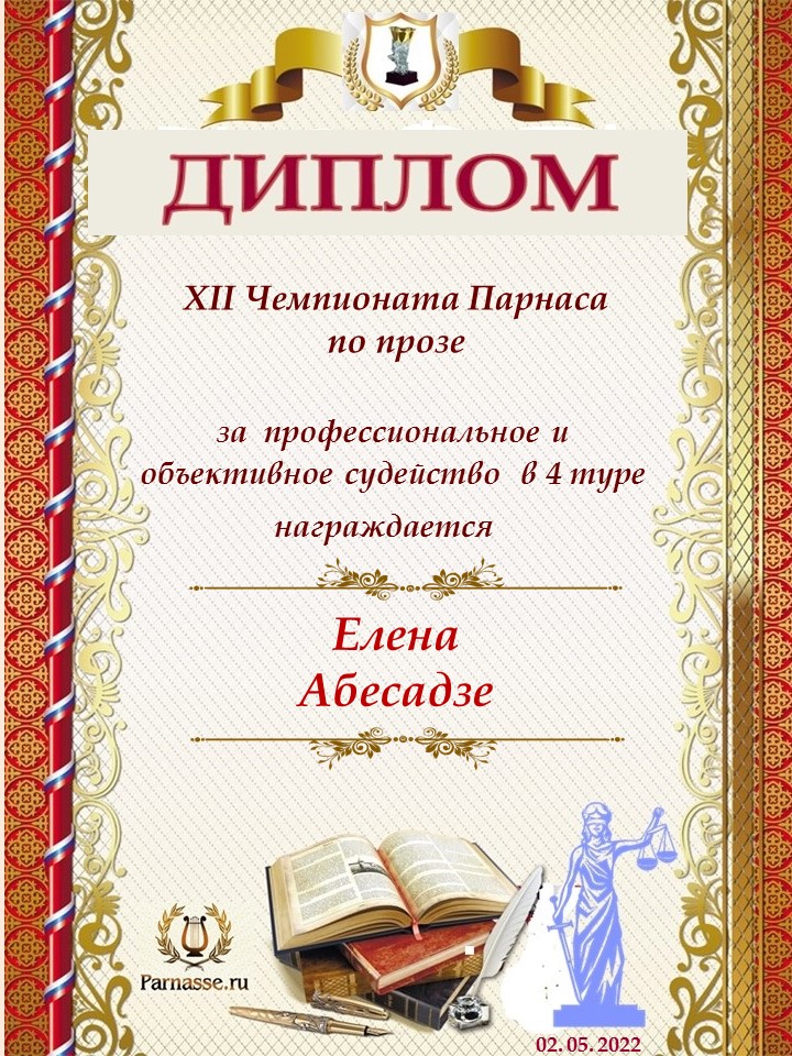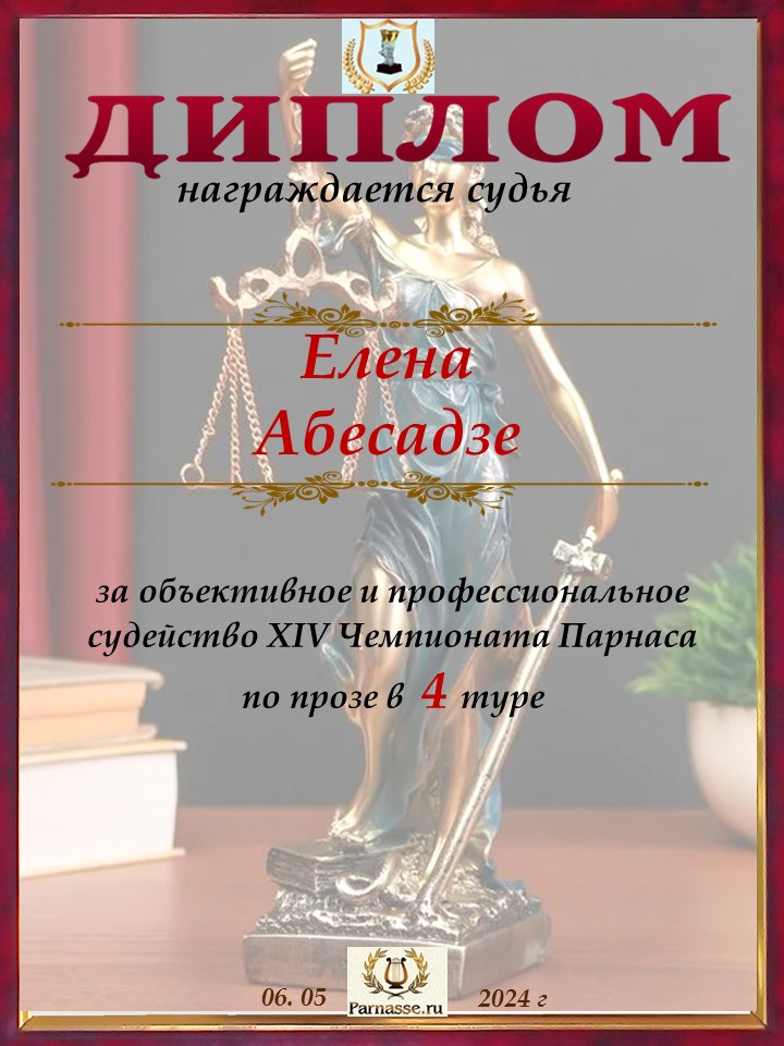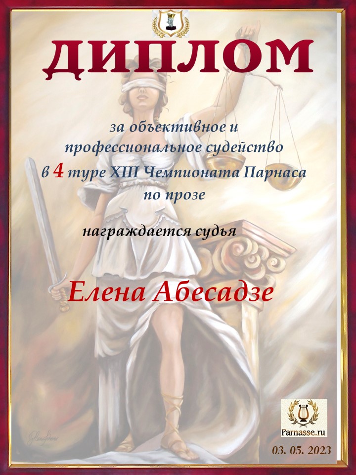 Спасибо за объективное и профессиональное судейство в 4 туре XIII Чемпионате Парнаса по прозе!