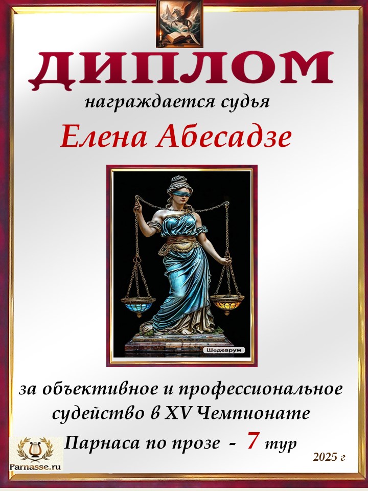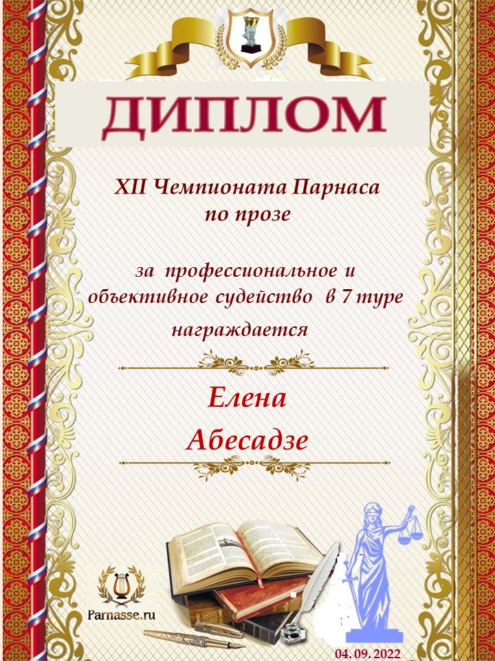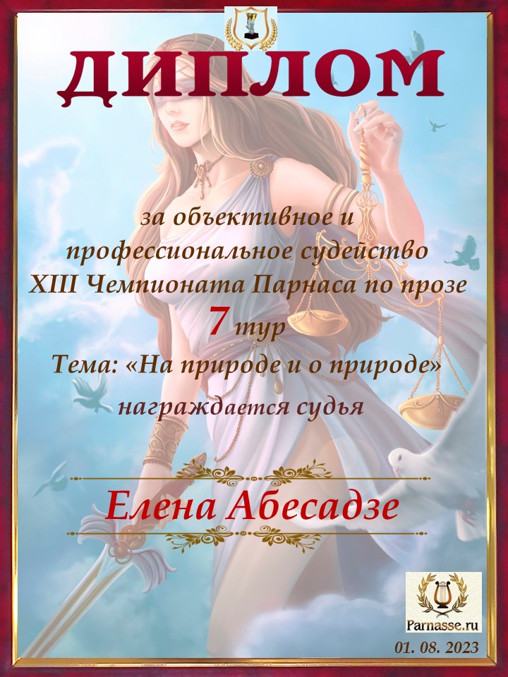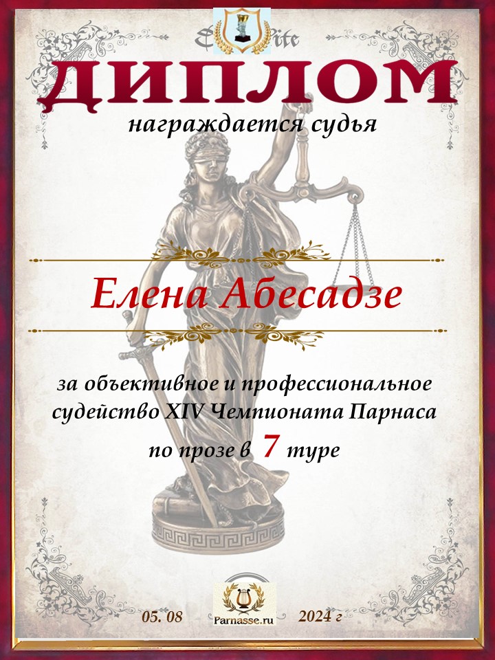 Спасибо за объективное и профессиональное судейство в 7 туре XIII Чемпионате Парнаса по прозе!