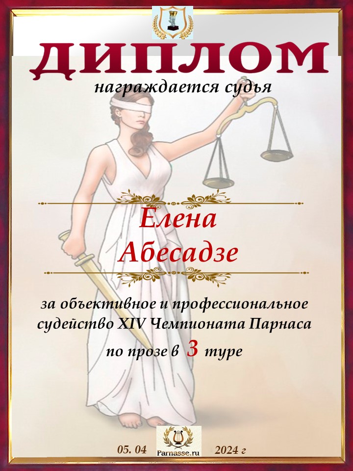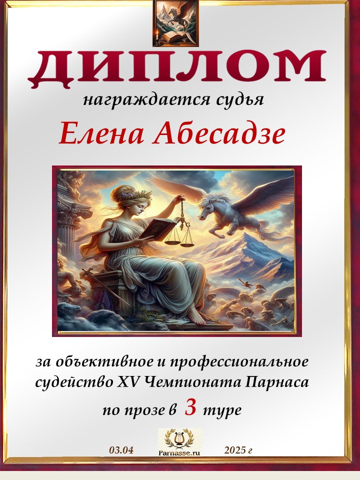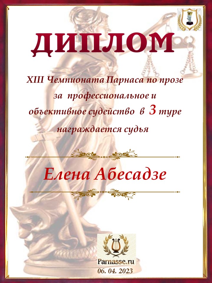 Спасибо за объективное и профессиональное судейство в 3 туре XII Чемпионата Парнаса по прозе!