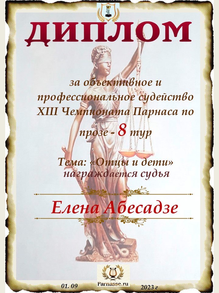 Спасибо за объективное и профессиональное судейство в 8 туре XIII Чемпионате Парнаса по прозе!