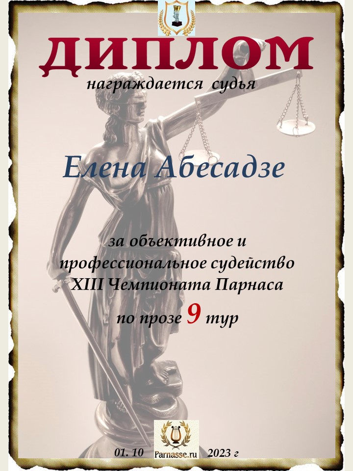 Спасибо за объективное и профессиональное судейство в 9 туре XIII Чемпионате Парнаса по прозе!