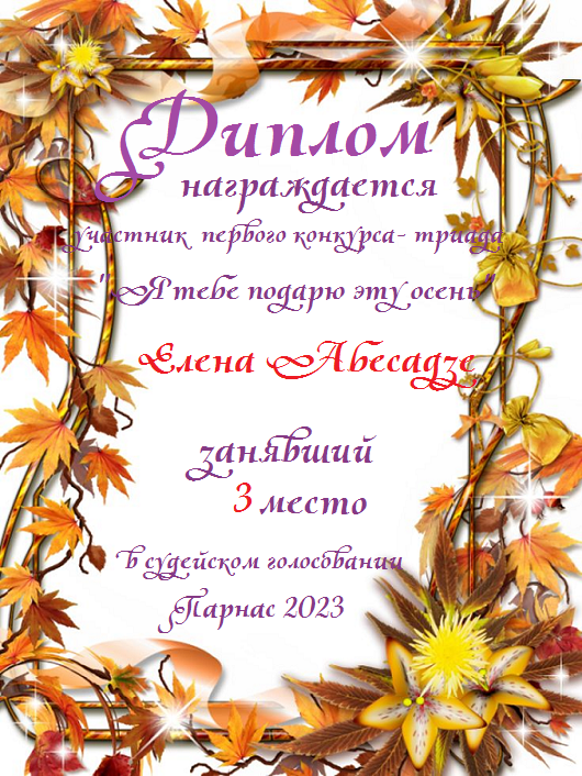 Третье место в судейском голосовании по итогам конкурса - триада «Листопад с дождём в обнимку кружит»