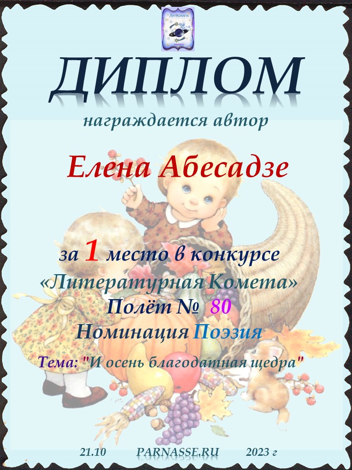 Поздравляю с занятым 1 местом в конкурсе "ЛитКомета - Полёт № 80" - Номинация Поэзия!