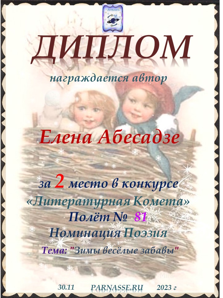 Второе место по итогам второго конкурса - триада "А за окном уже зима"