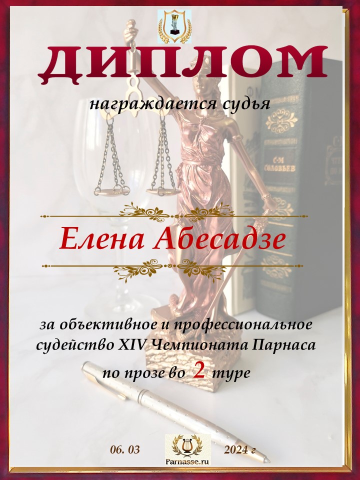 Спасибо за объективное и профессиональное судейство во 2 туре XIV Чемпионате Парнаса по прозе!