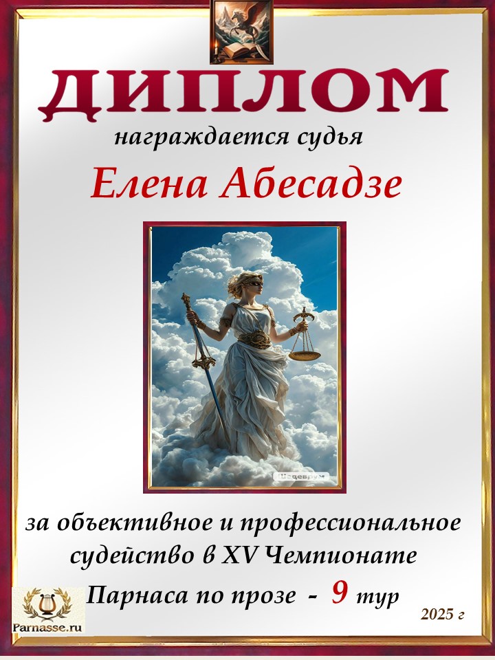 Спасибо за объективное и профессиональное судейство в 9 туре XII Чемпионата Парнаса по прозе!
