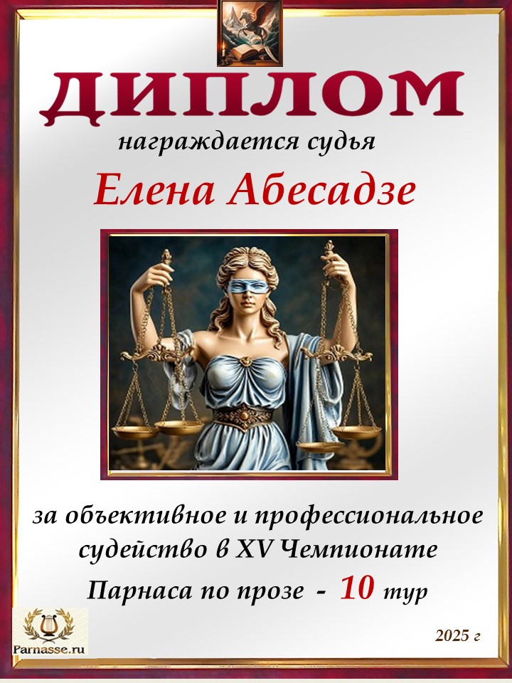 Спасибо за объективное и профессиональное судейство в 10 туре XIII Чемпионате Парнаса по прозе!