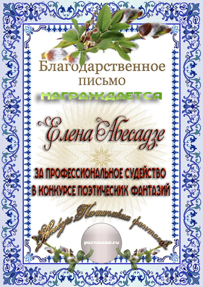 Спасибо за объективное и профессиональное судейство в 3 туре XIII Чемпионате Парнаса по прозе!
