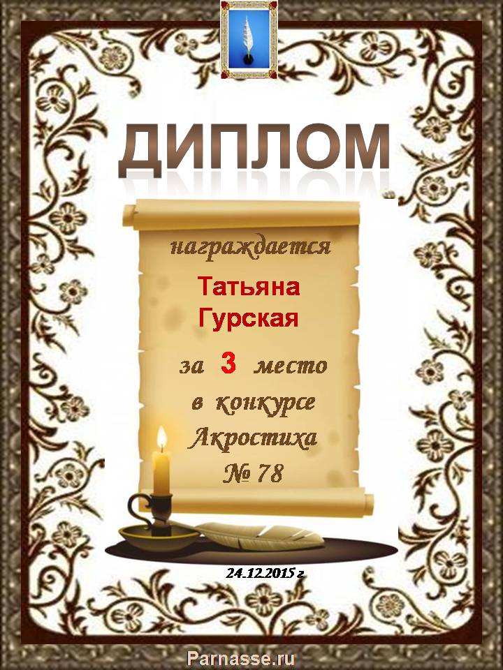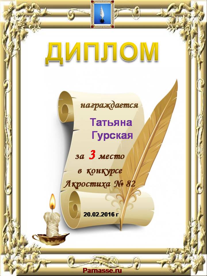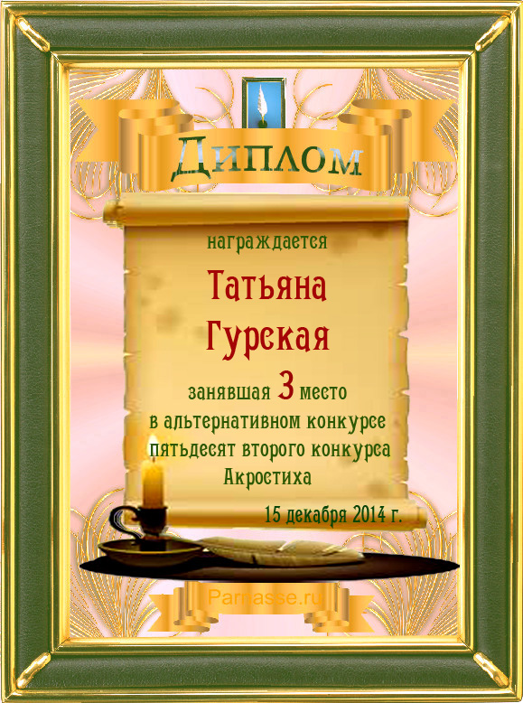 Диплом за 3 место в юбилейном конкурсе АКРОСТИХА № 100 (Альтернатива)! ПОЗДРАВЛЯЮ!