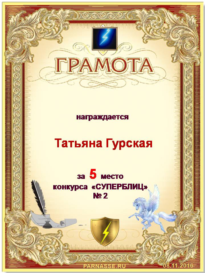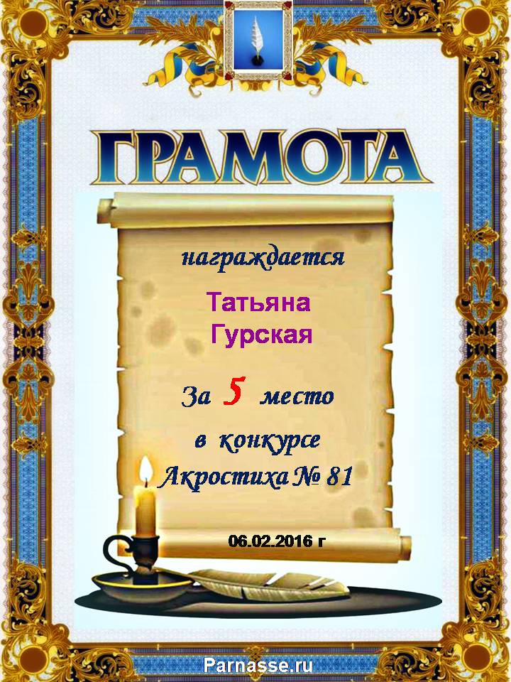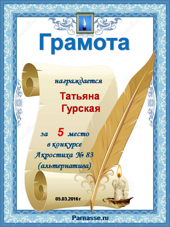 Грамота за 5 место в 110 конкурсе АКРОСТИХА (Альтернатива)! ПОЗДРАВЛЯЮ!