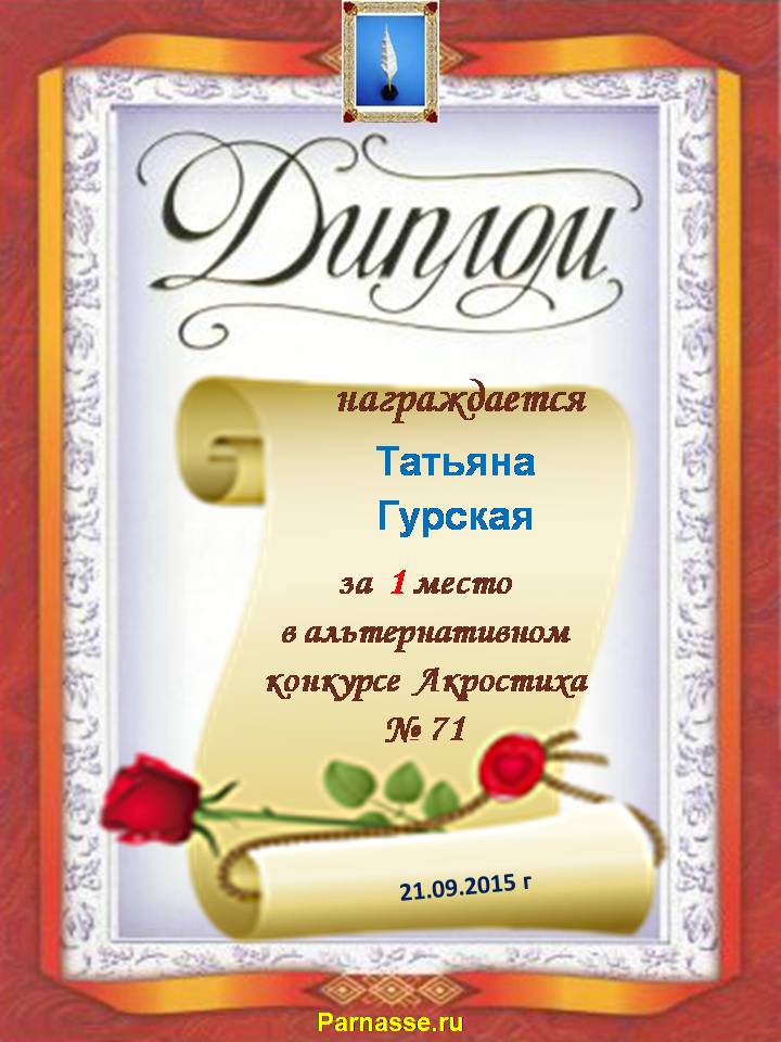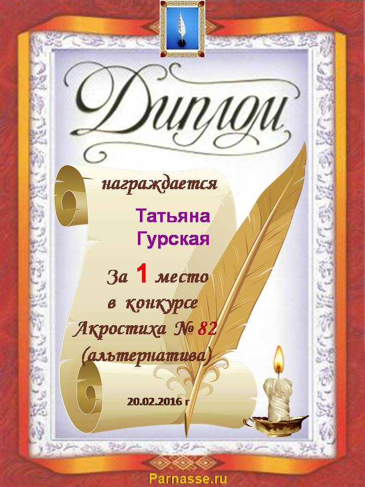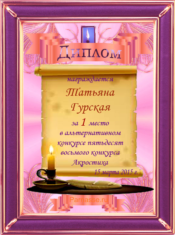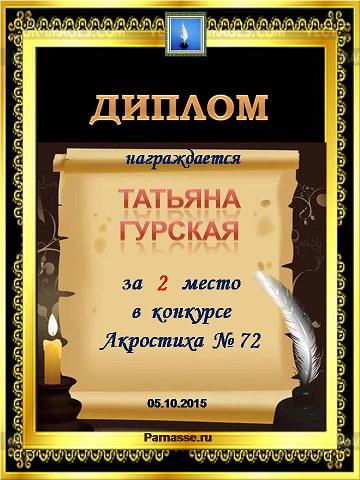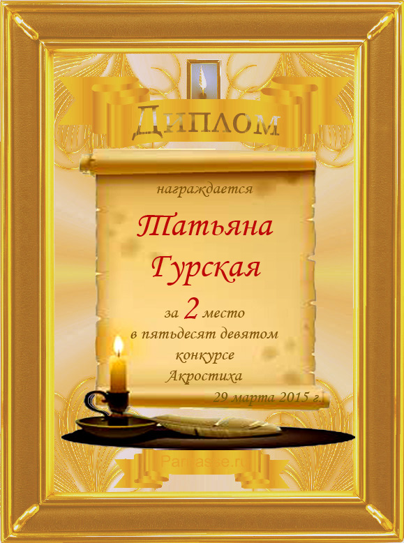 Диплом за 2 место в 102 конкурсе АКРОСТИХА (Альтернатива)! ПОЗДРАВЛЯЮ!