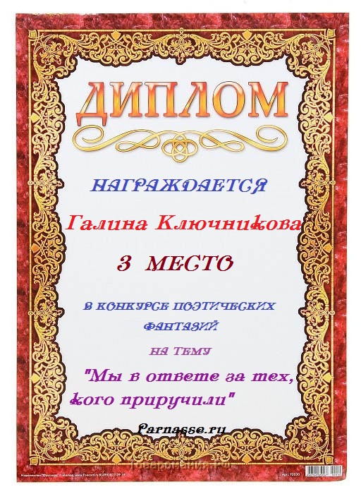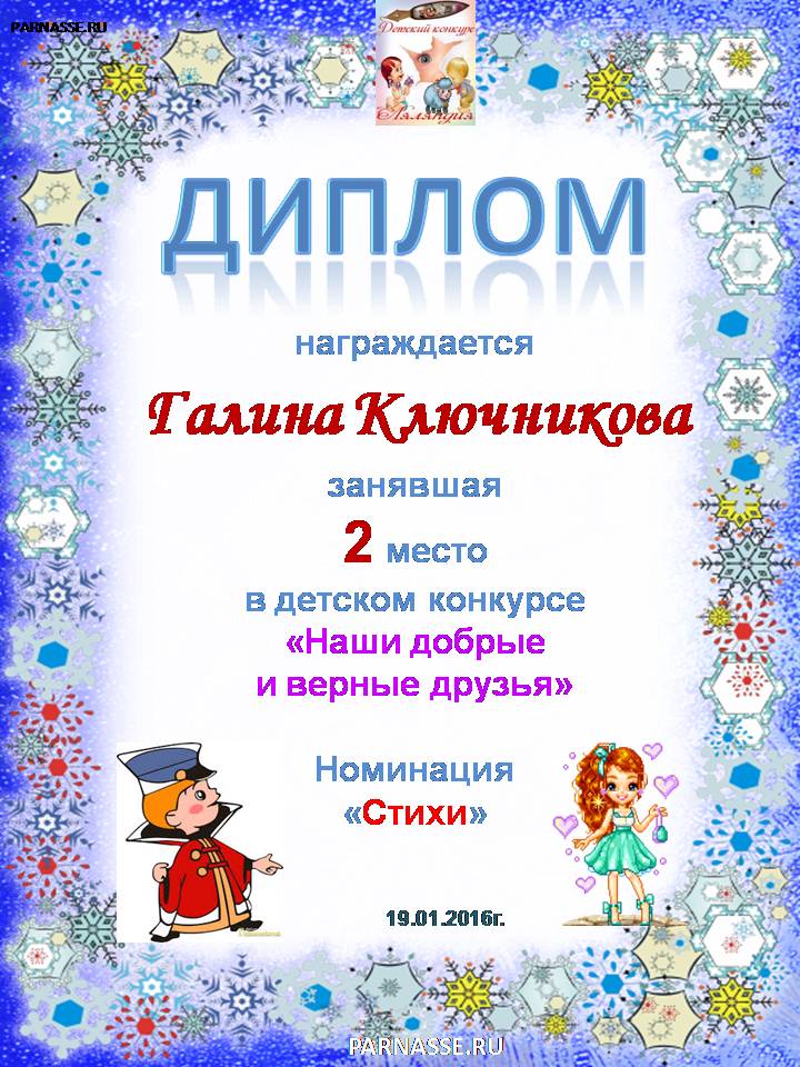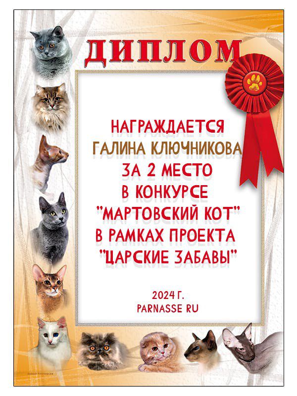 Второе место по итогам конкурса "Мой нежный и ласковый друг"