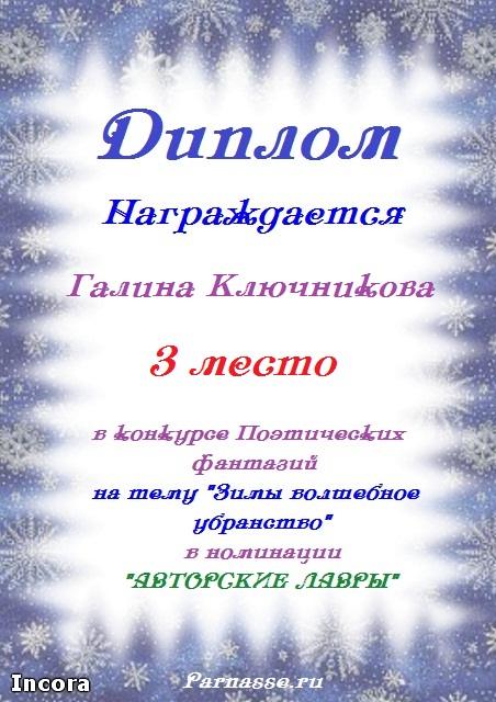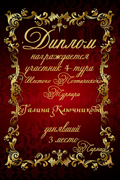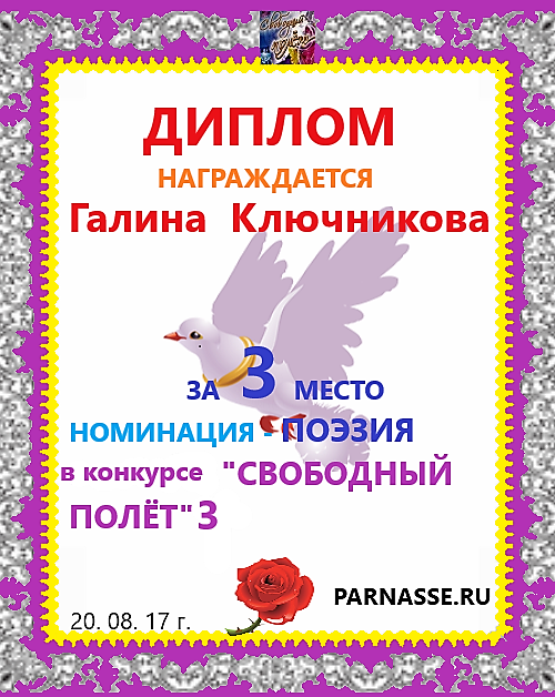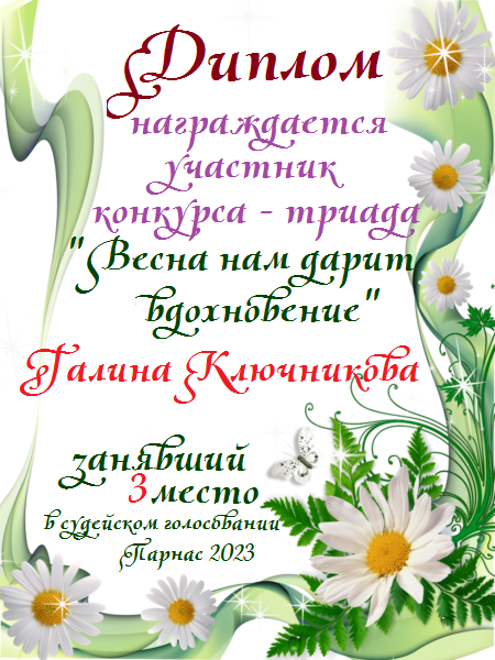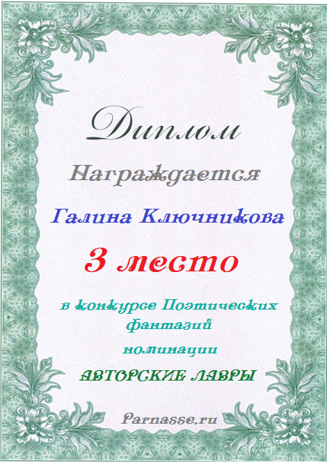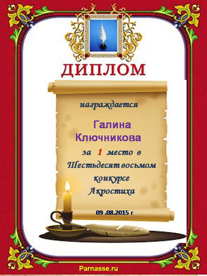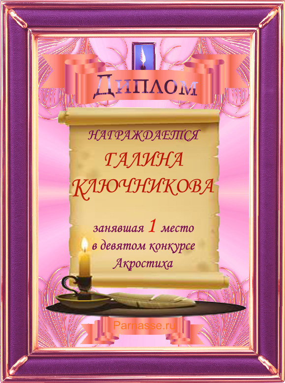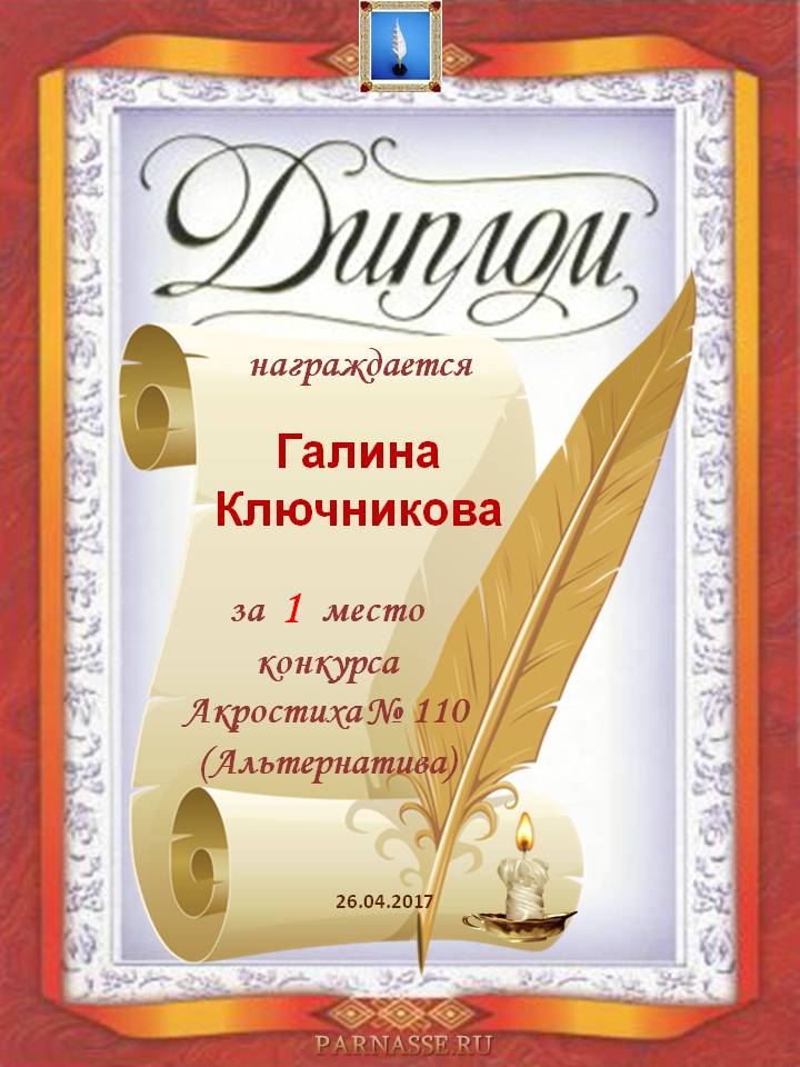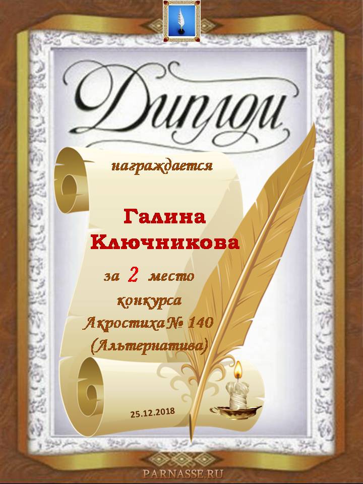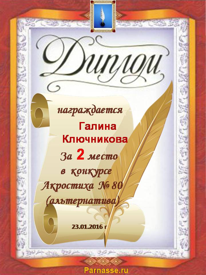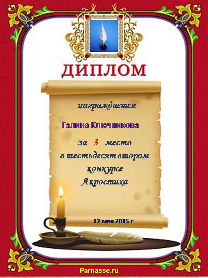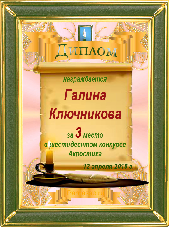 Диплом за двойное 3 место в 96 конкурсе АКРОСТИХА (Альтернатива)! ПОЗДРАВЛЯЮ!