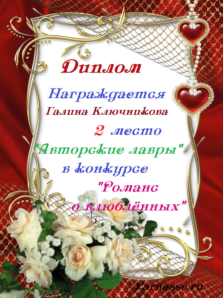 За 2 место в конкурсе"РОМАНС О ВЛЮБЛЁННЫХ"