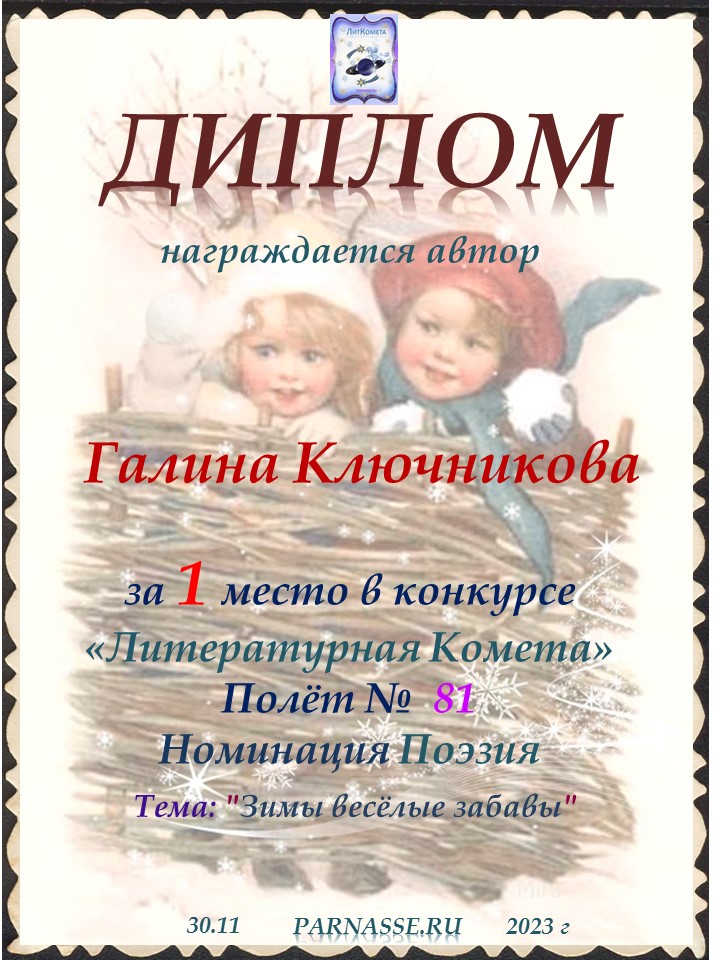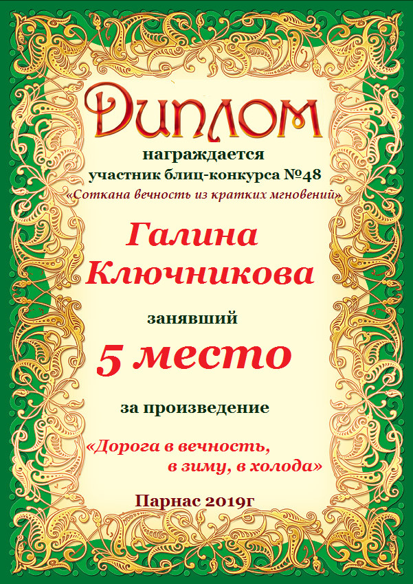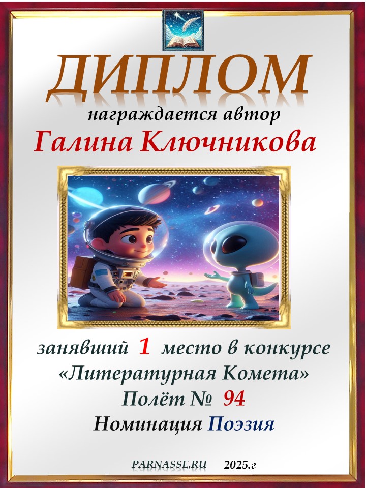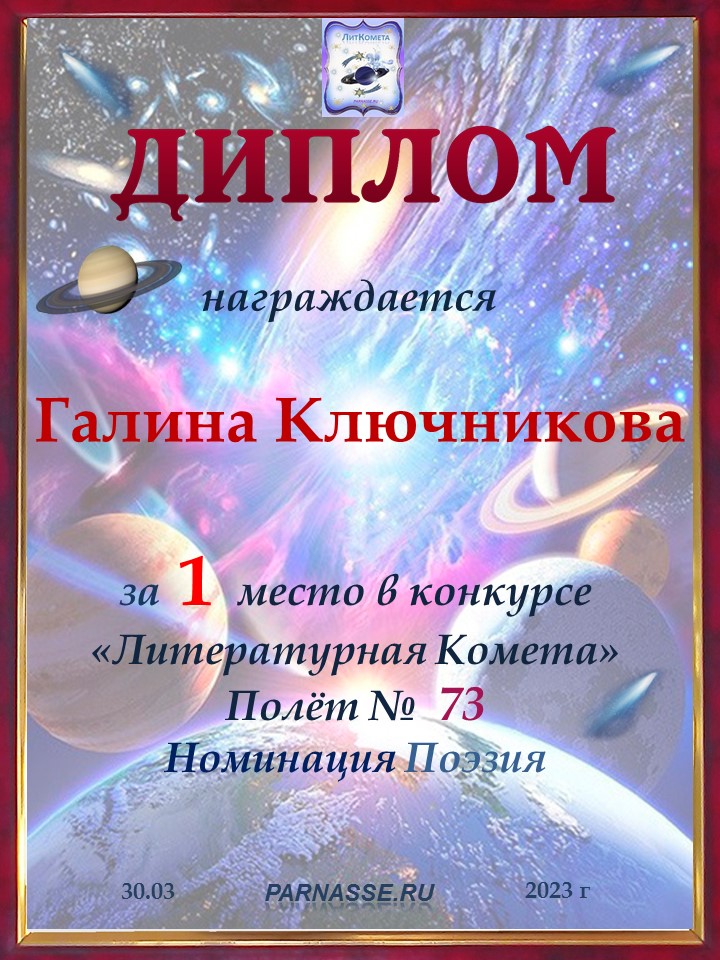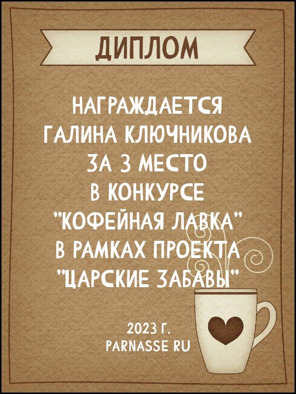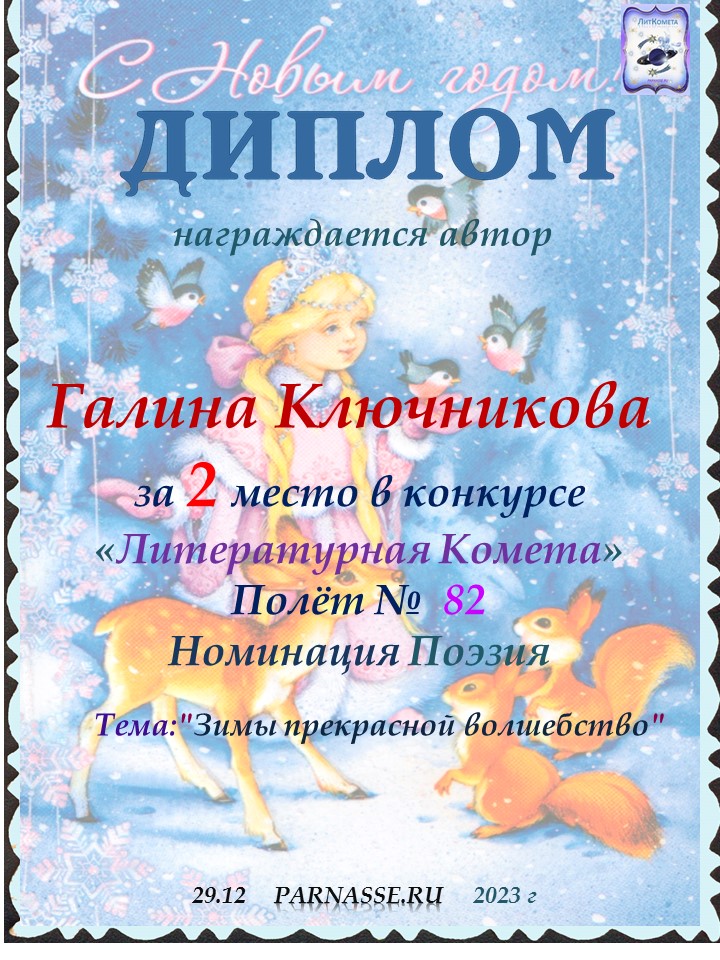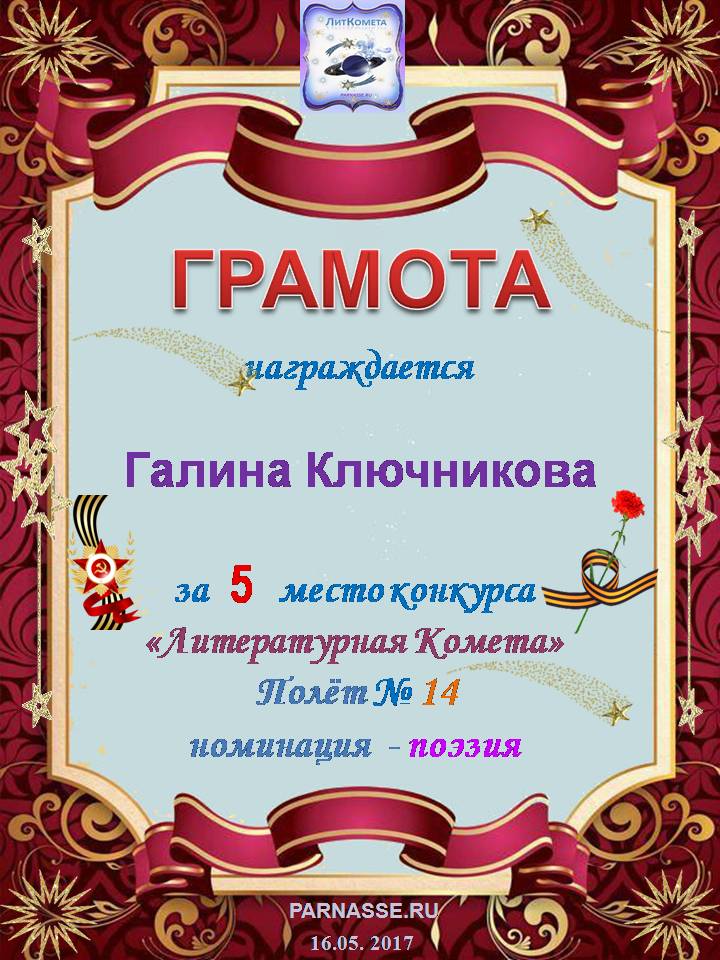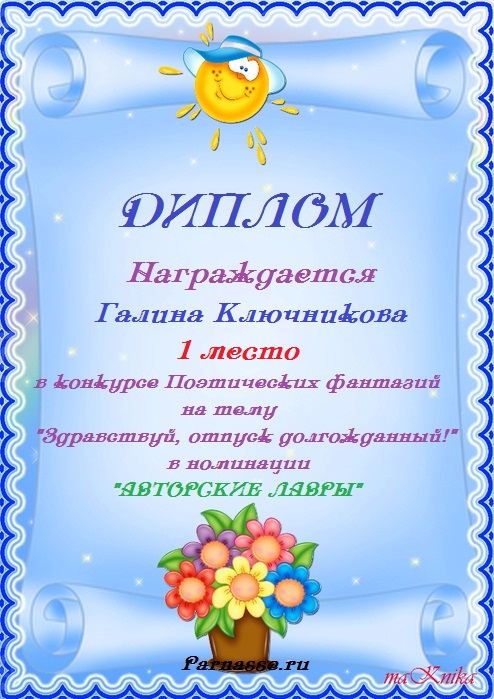 Диплом за 2 место в конкурсе авторского стиха №2 под названием "У каждого есть в жизни Берег Детства".ПОЗДРАВЛЯЕМ!