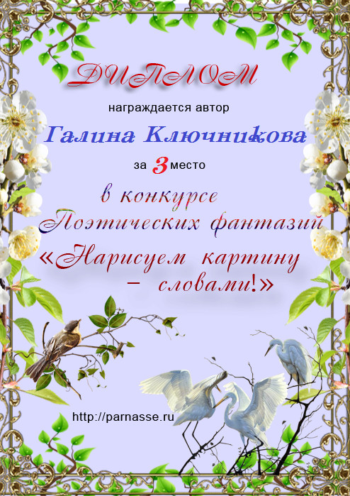 Третье место в судейском голосовании по итогам конкурса: «Пусть все птицы о счастье поют»