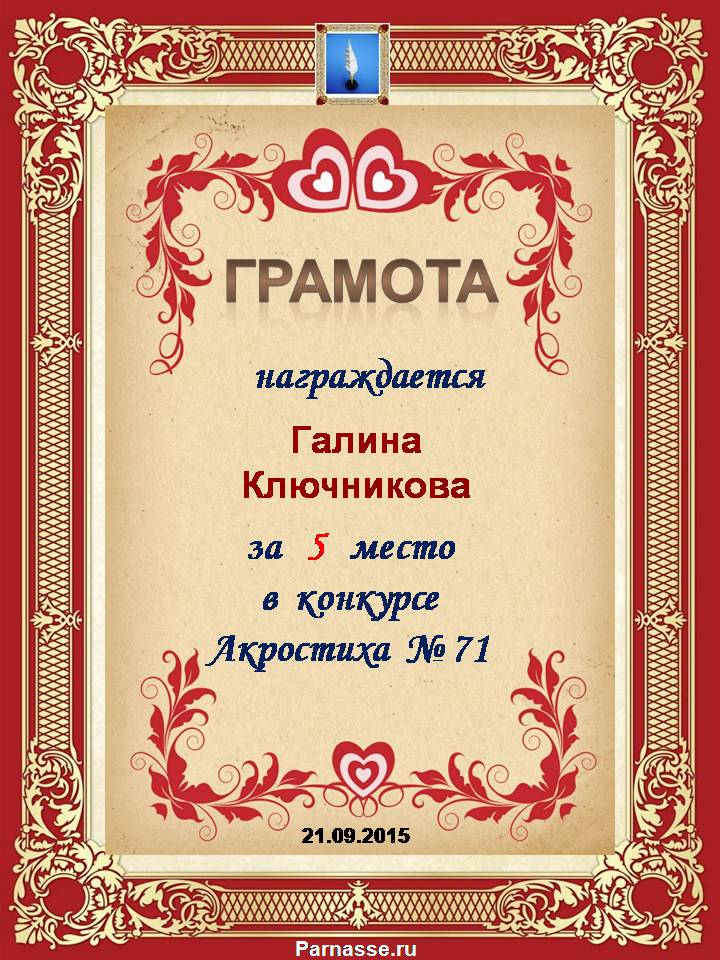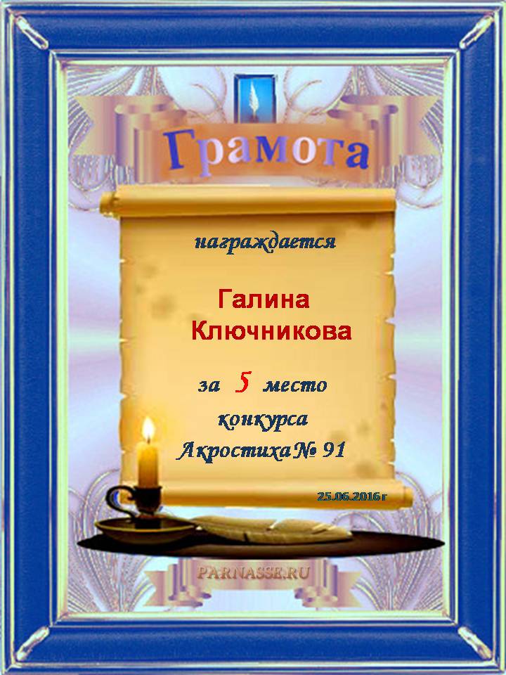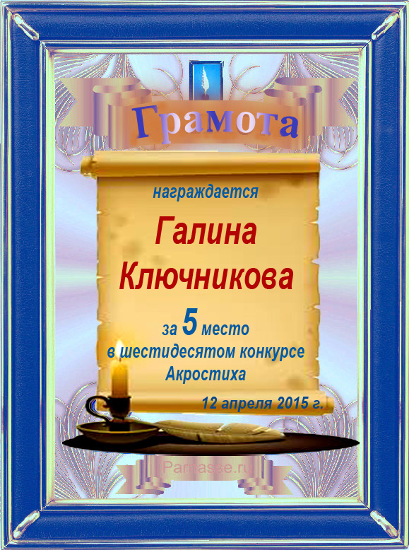 Грамота за 5 место в 94 конкурсе Акростиха (Альтернатива). ПОЗДРАВЛЯЮ!