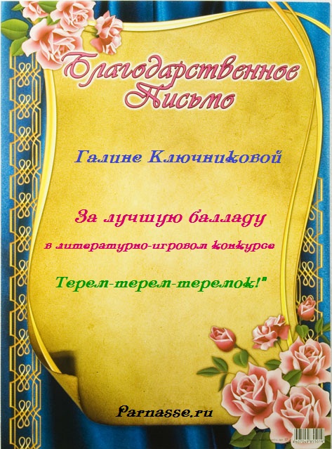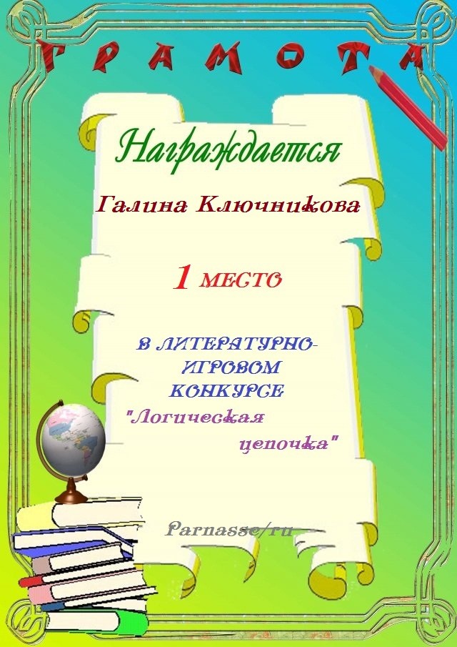 Грамота за творческие успехи в литературно-игровом конкурсе "В гостях у буриме".ПОЗДРАВЛЯЕМ!