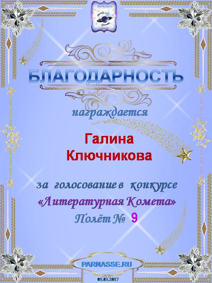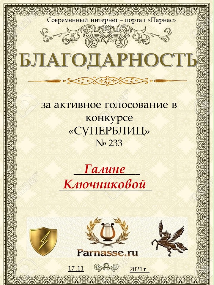 ГАЛИНА, БЛАГОДАРЮ ЗА УЧАСТИЕ В СЛОЖНОЙ НОМИНАЦИИ КОНКУРСА №10Н