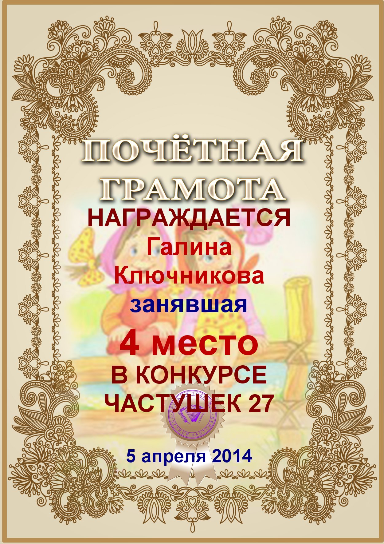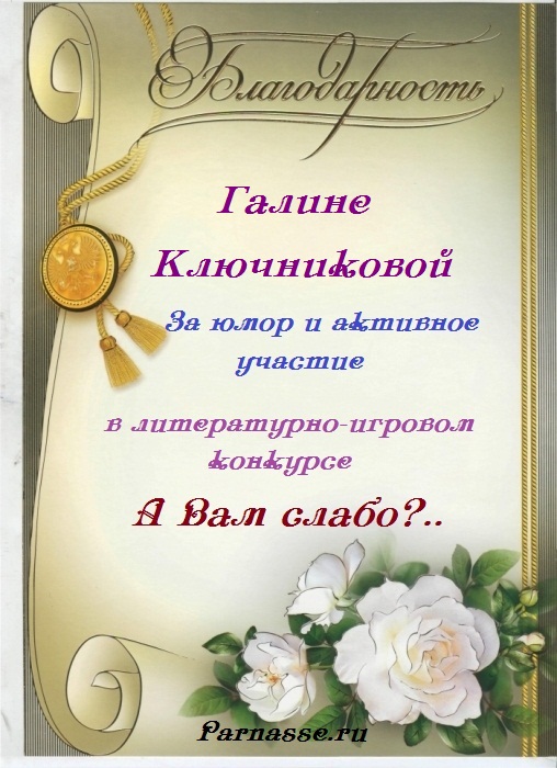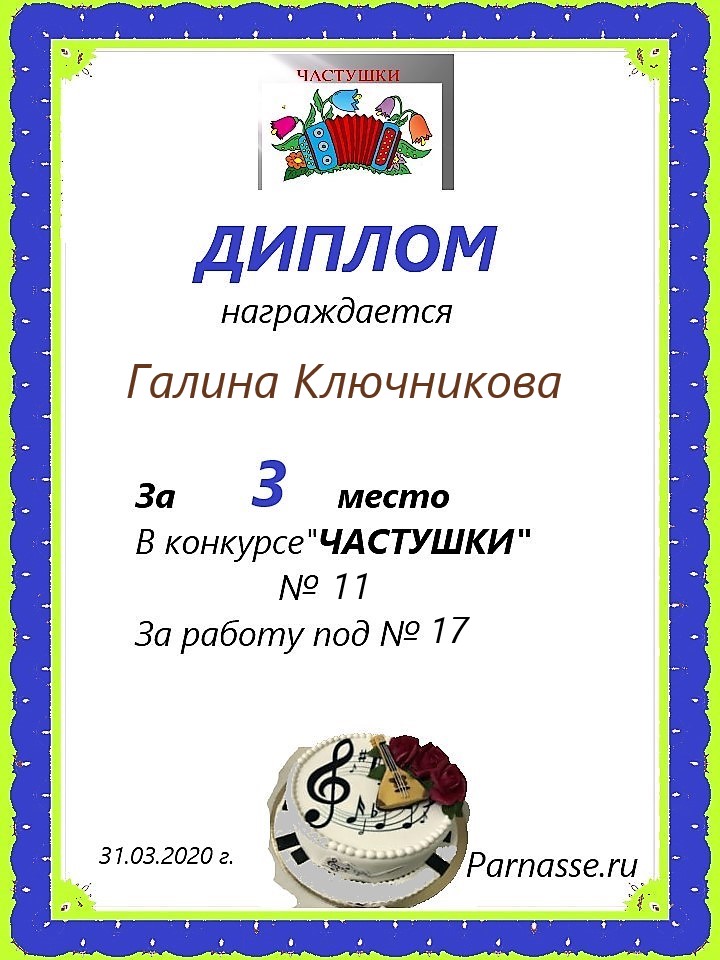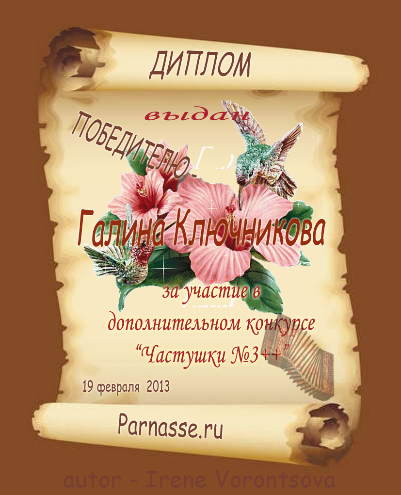ГАЛИНА, ПОЗДРАВЛЯЮ С ПОБЕДОЙ В КОНКУРСЕ ЧАСТУШЕК №10н