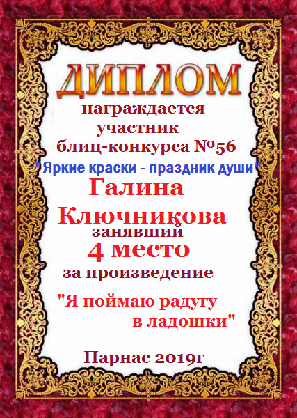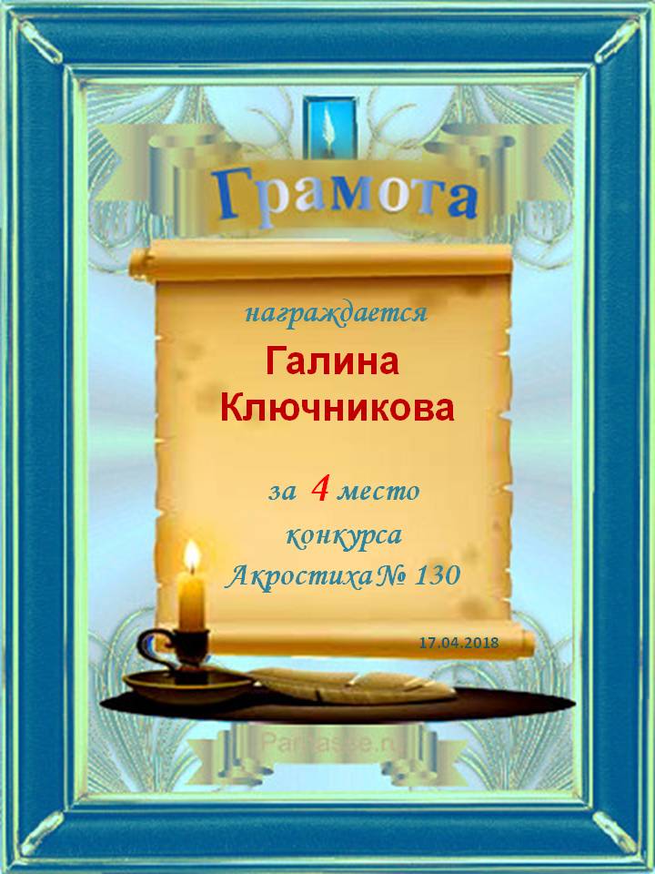 Грамота за 4 место в 97 конкурсе АКРОСТИХА (Альтернатива)! ПОЗДРАВЛЯЮ!