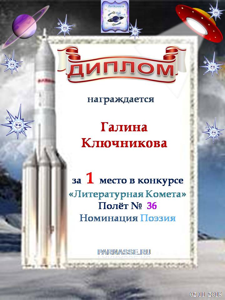 ![]() Медаль за 1 место в конкурсе "ЛитКомета - Полёт № 96"