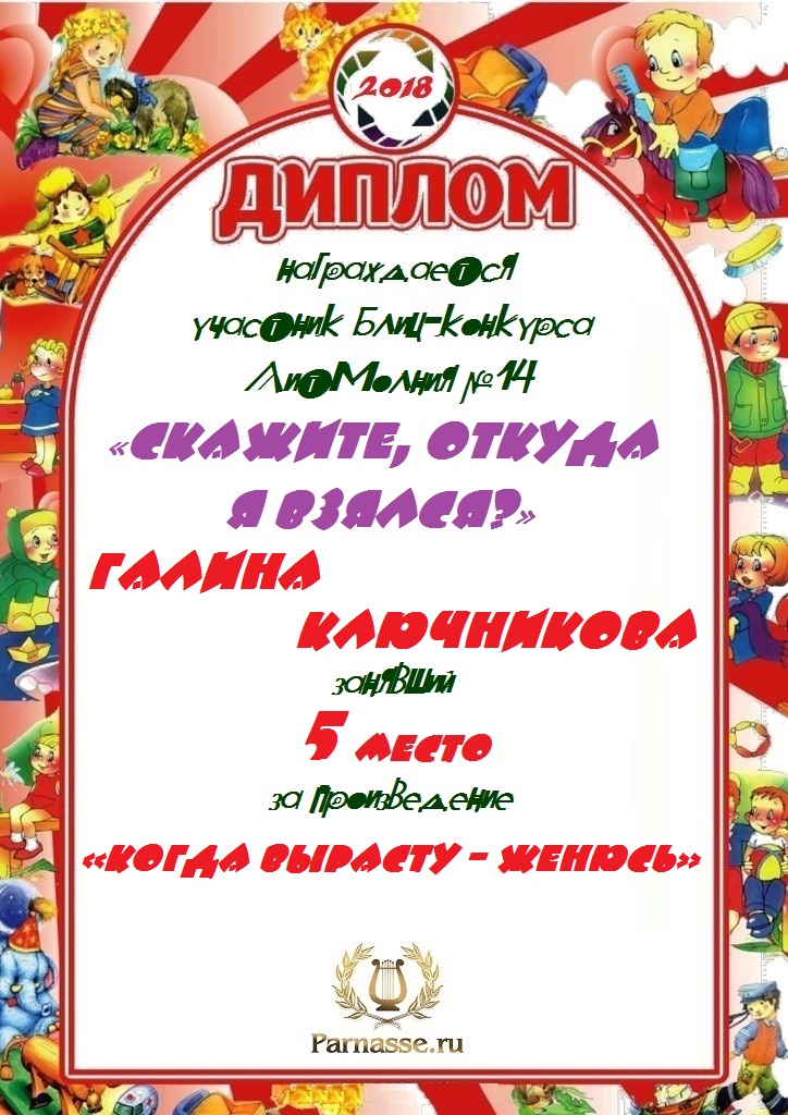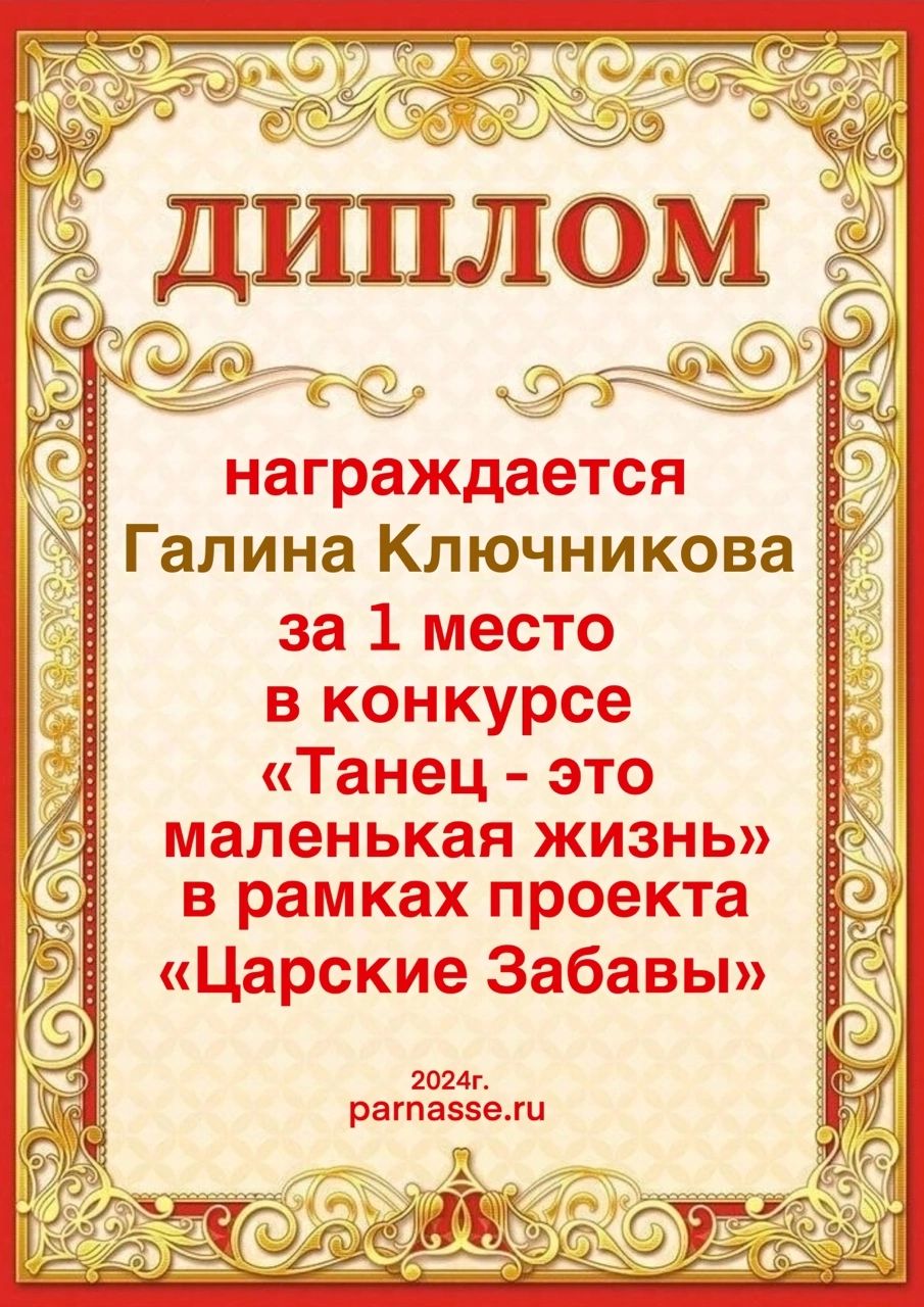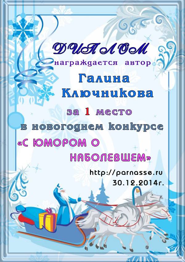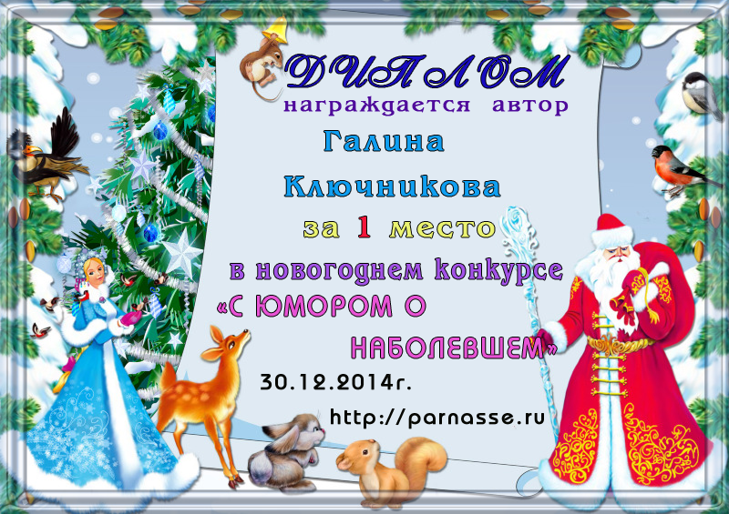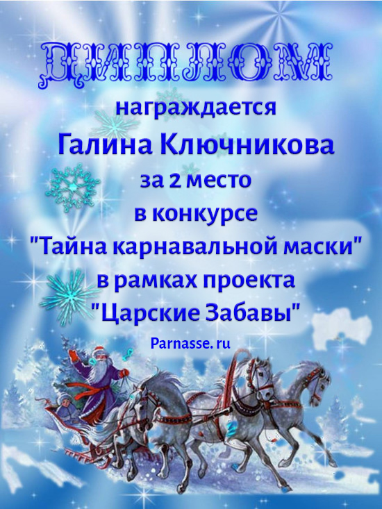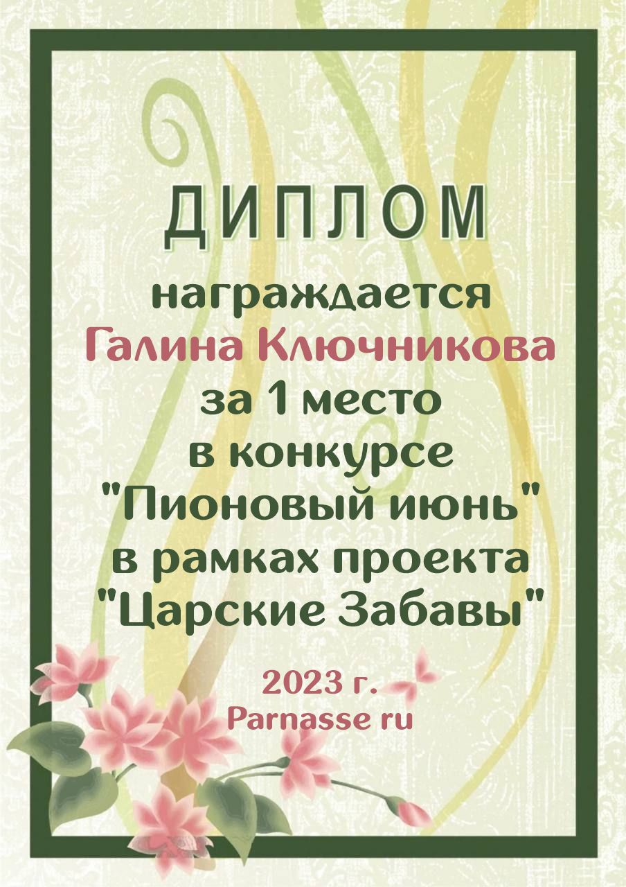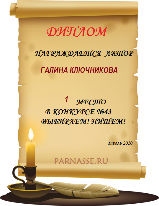 Диплом за 1 место в праздничном конкурсе "Поздравим Парнас с трёхлетием вместе!"