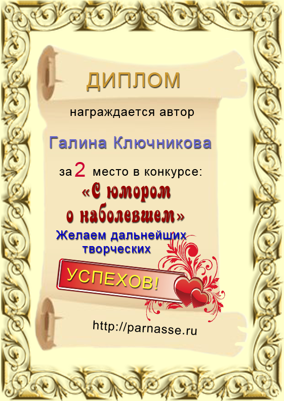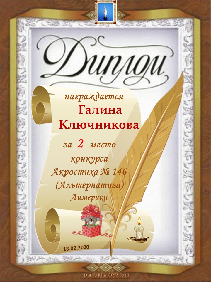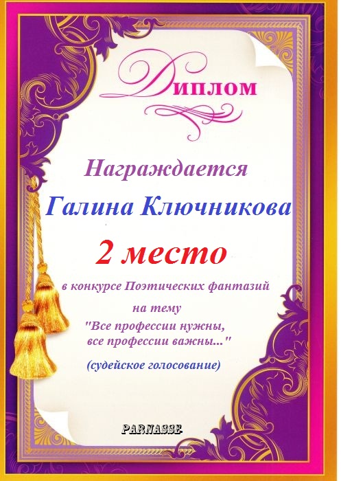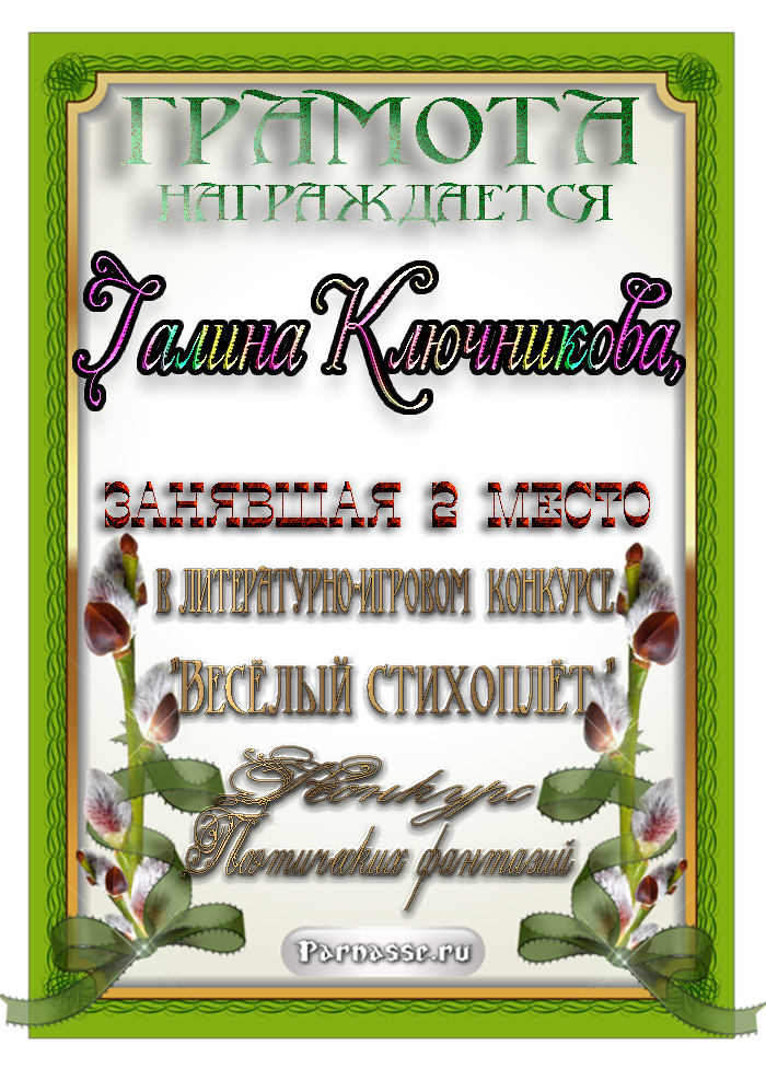 Диплом за 2 место во 2 годовом конкурсе Акростиха по итогам судейского голосования! ПОЗДРАВЛЯЮ!