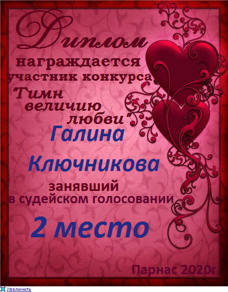 Второе место по итогам конкурса: "Зов любви"