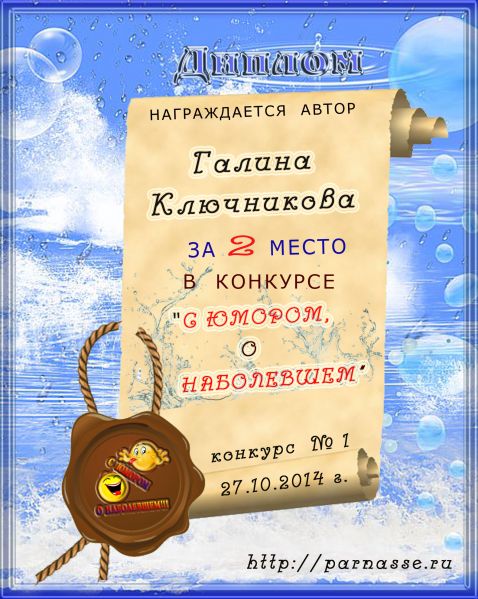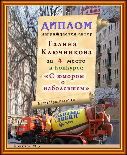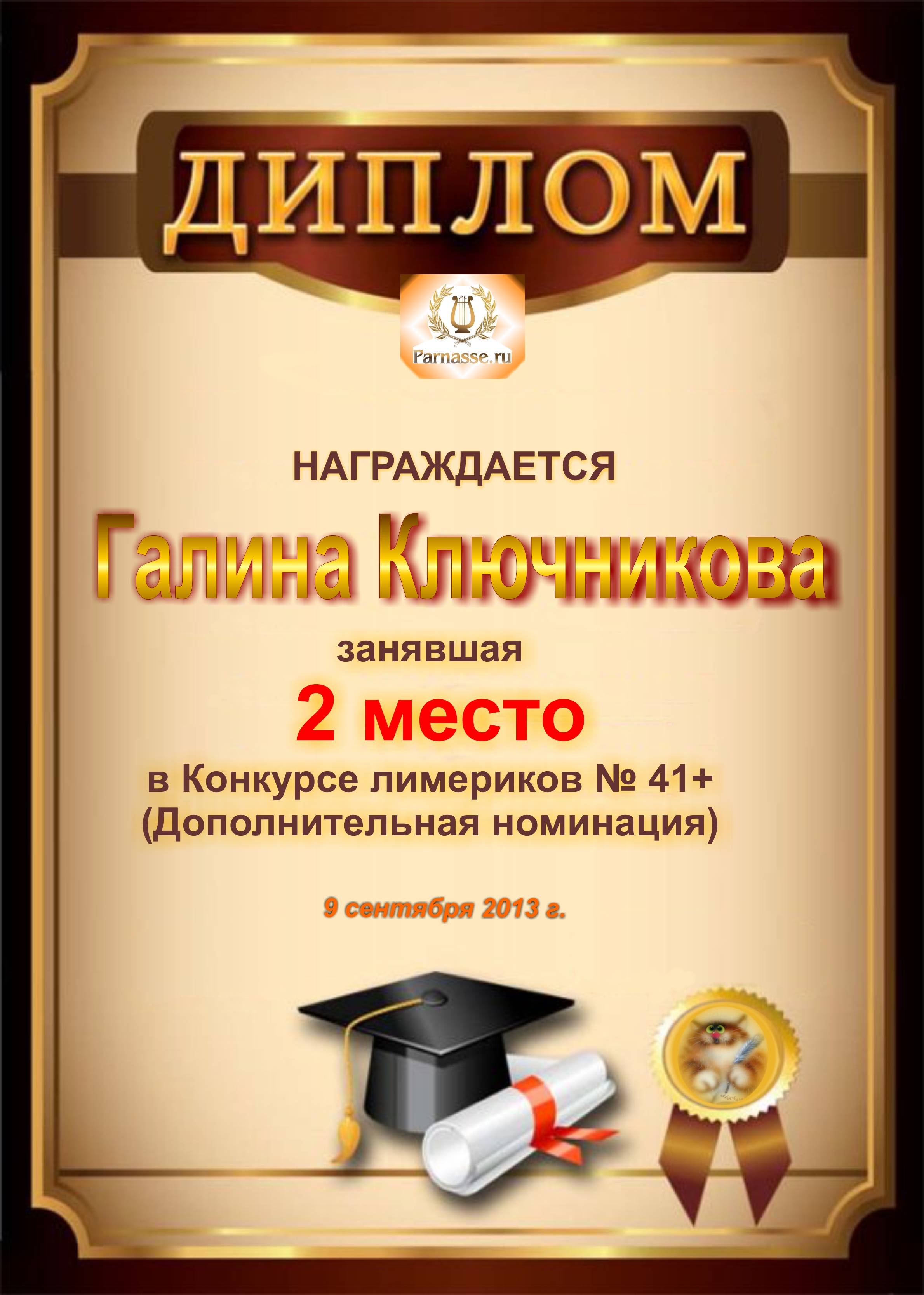 Диплом за победу и 2 место в дополнительной номинации конкурса лимериков № 41+ (9.09.2013г.)