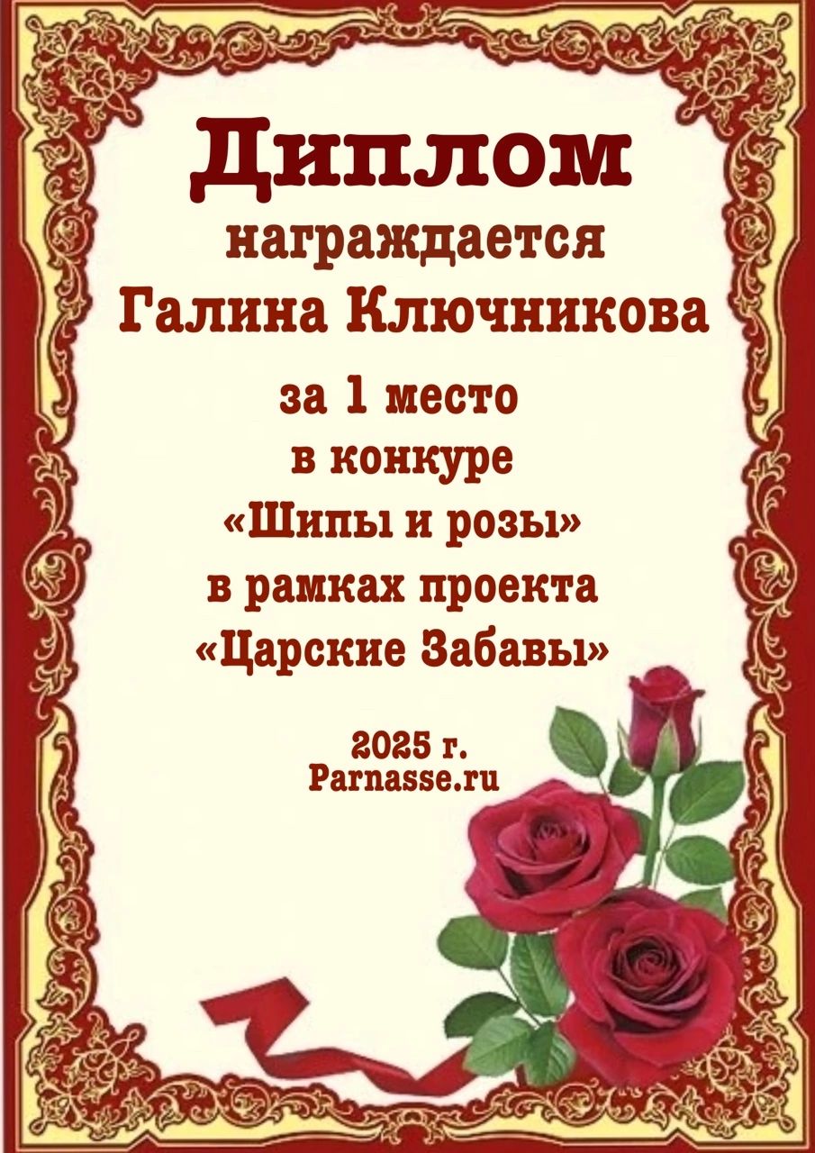 1 место в конкурсе "Шипы и розы". Поздравляем!