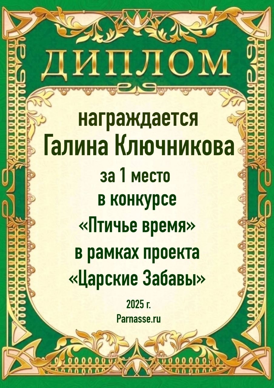 1 место в конкурсе "Птичье время". Поздравляем!