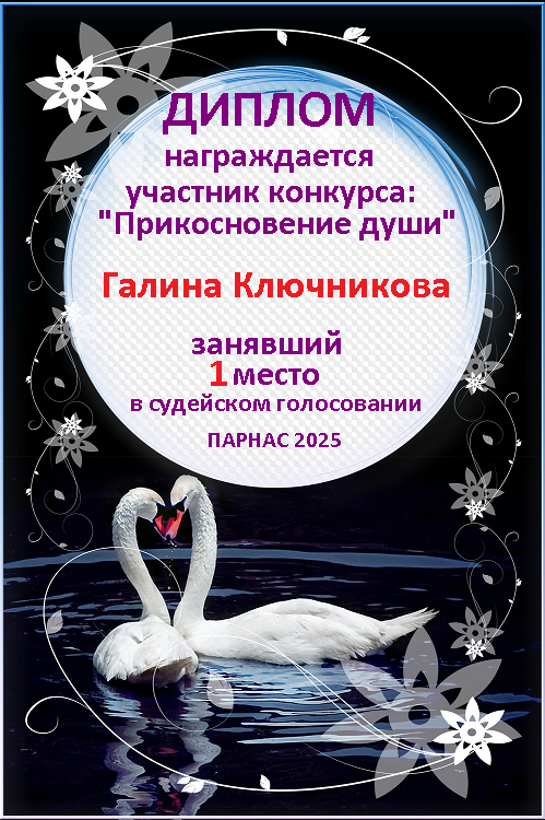 Первое место в судейском голосовании по итогам конкурса "Прикосновение души"