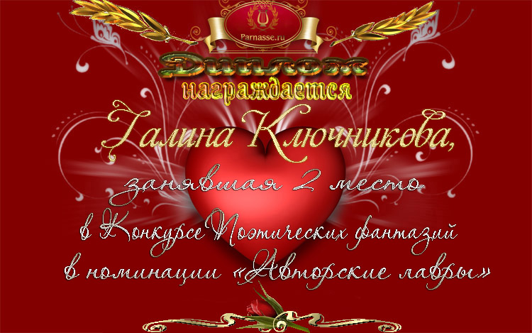 1 место в конкурсе "Поэзия чувств". Поздравляем!
