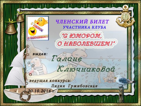 Диплом за юмористический конкурс № 13