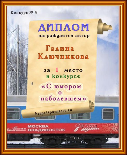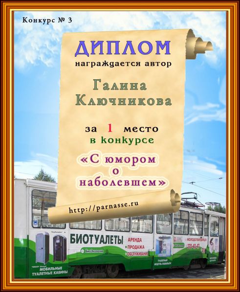 Диплом за 1 место в конкурсе "С юмором. о наболевшем! № 5.