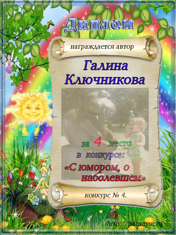 Похвальная грамота за 4 место в конкурсе лимериков № 56+ (6.07.2014 г.)