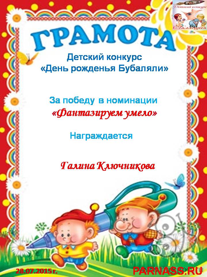 Похвальная грамота за 4 место и активное участие в конкурсе лимериков № 71+ (03.09.2015 г.)