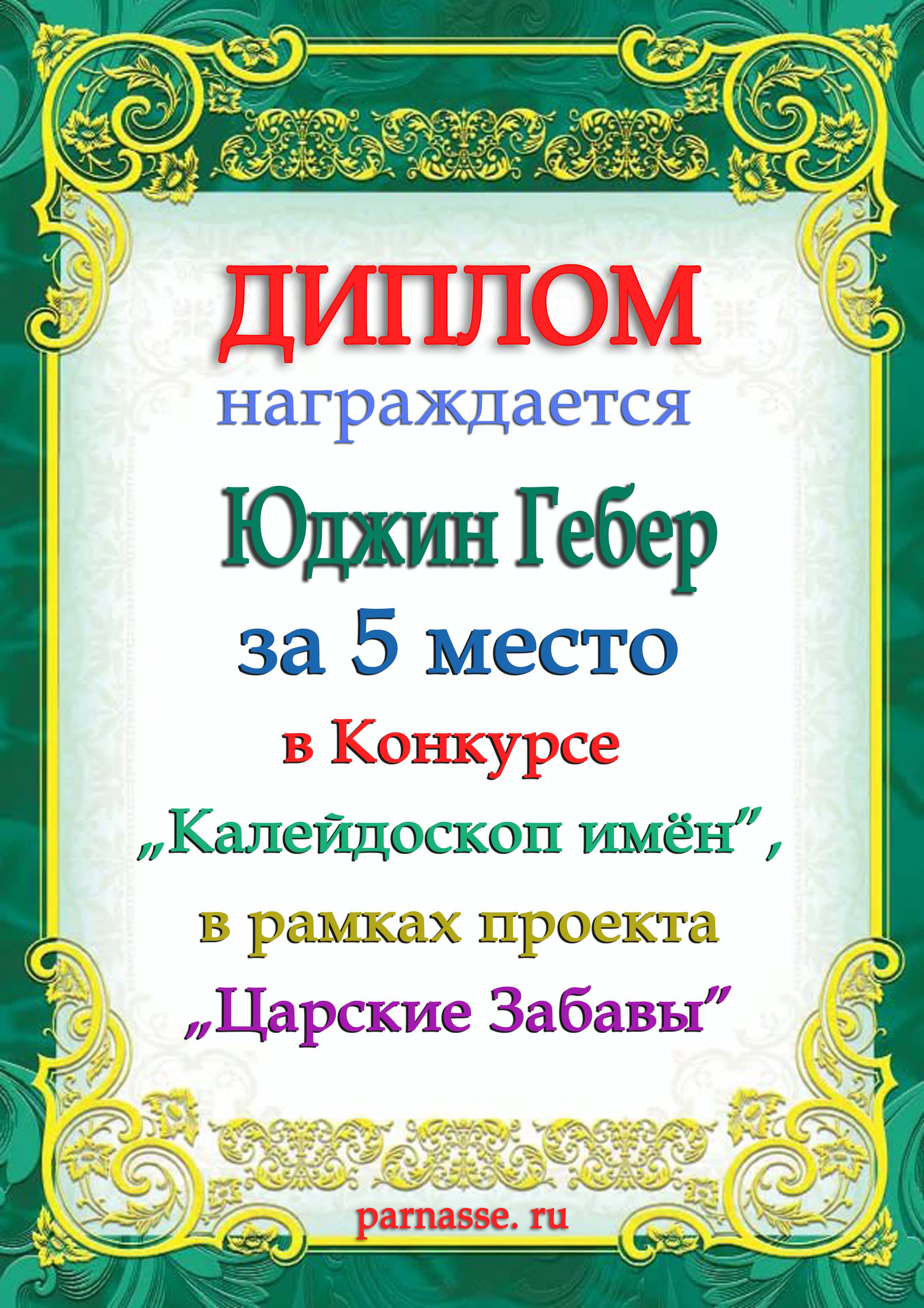 Подарок от: Конкурс "Царские Забавы", 15 апреля 2017: