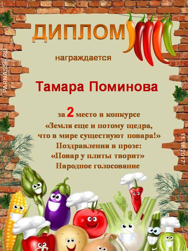 Поздравляем со 2 местом! Номинация: Поздравления в прозе: Повар у плиты творит - народное голосование