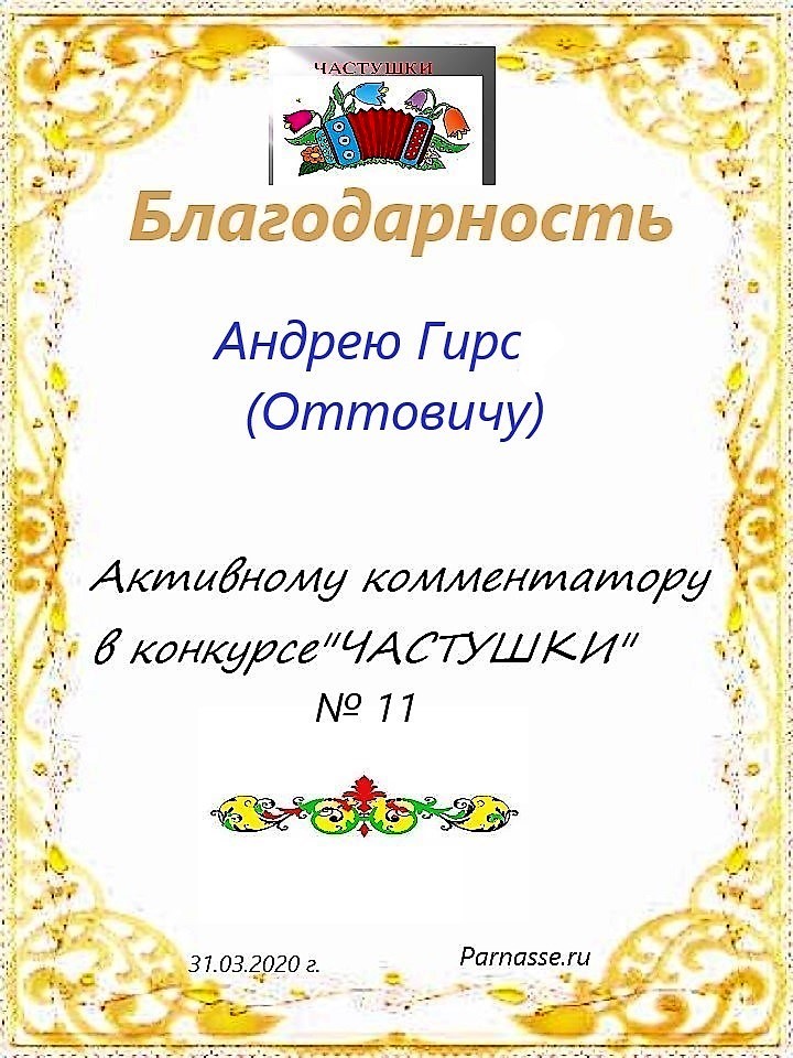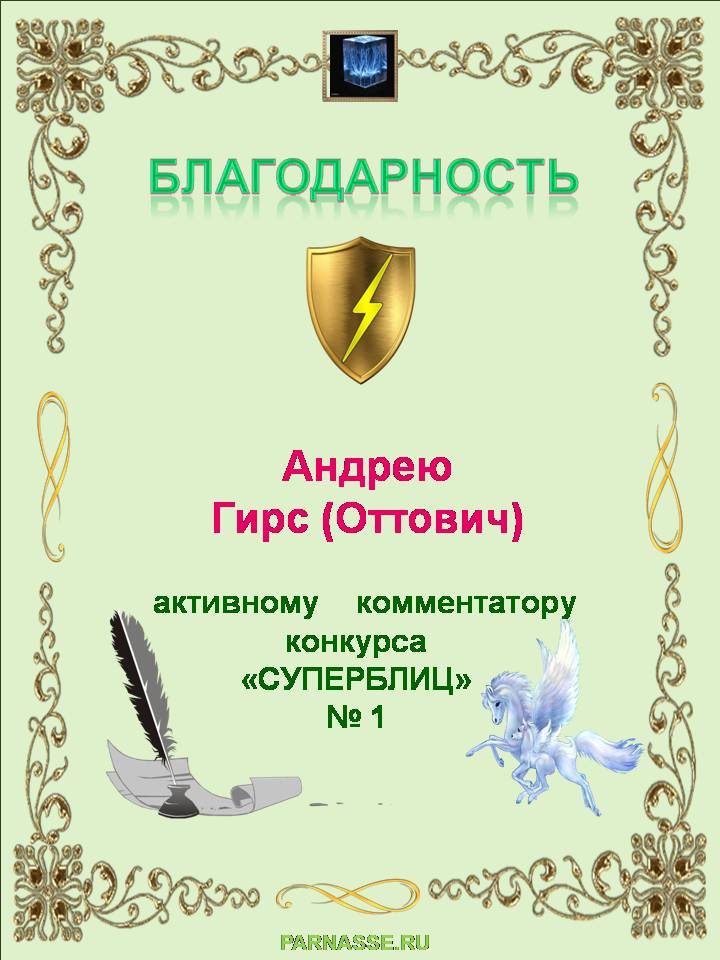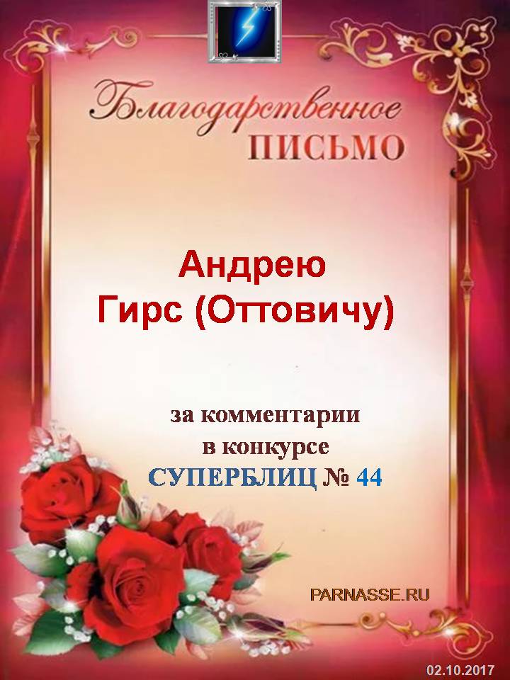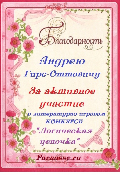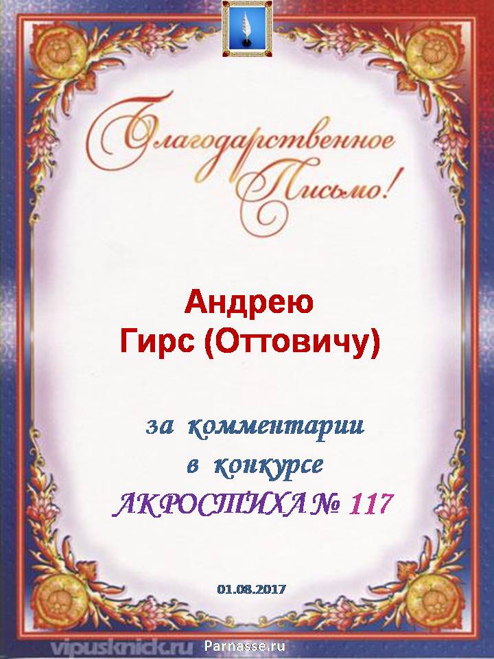 Благодарность активному комментатору в конкурсе Акростиха № 117!СПАСИБО БОЛЬШОЕ!