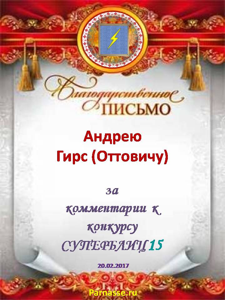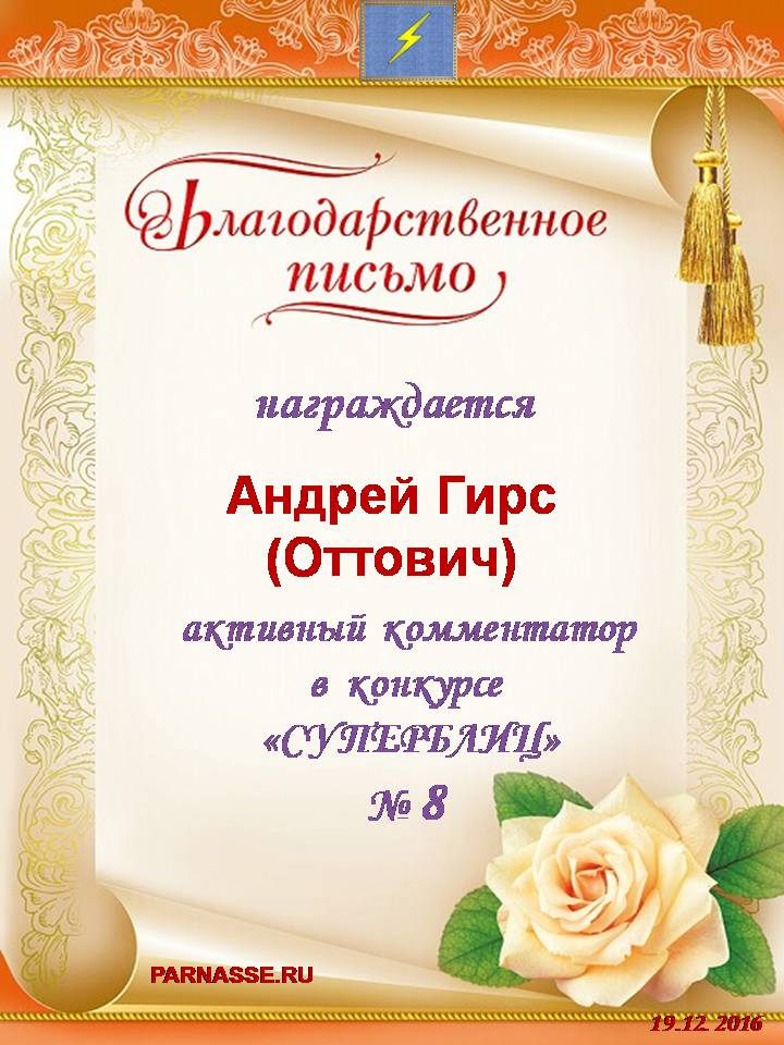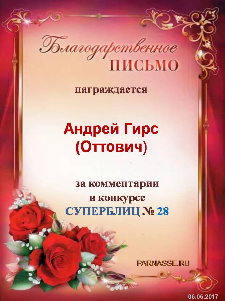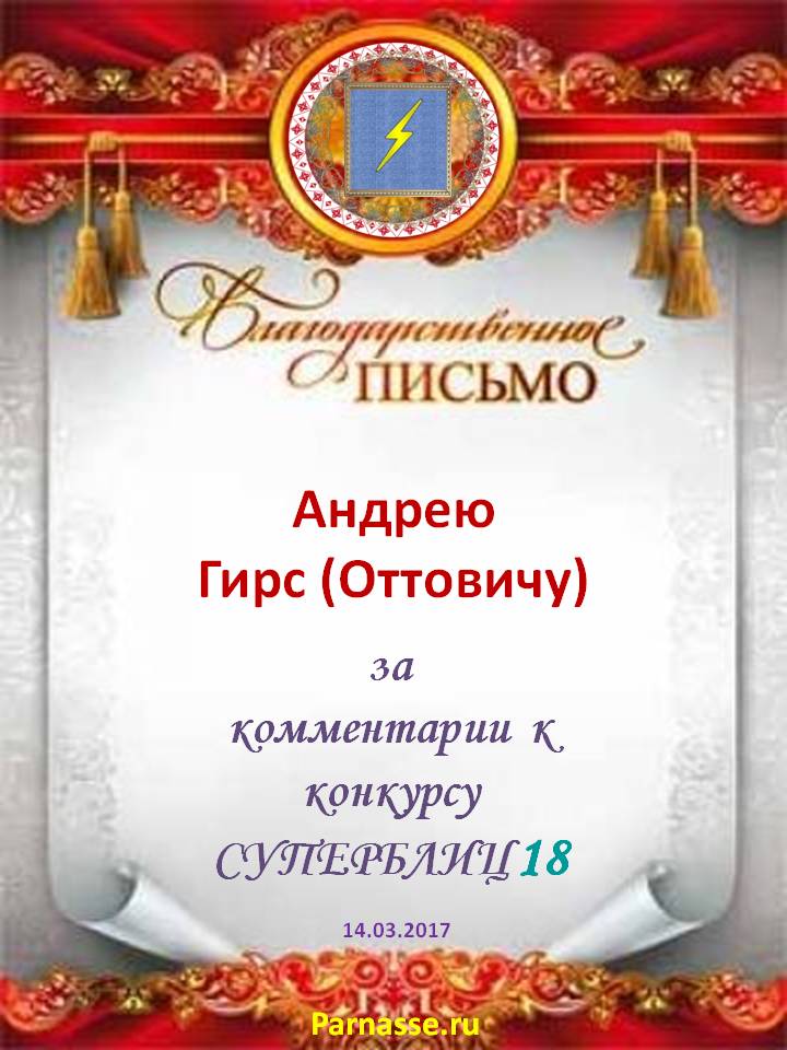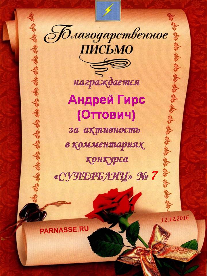 Благодарность активному комментатору в конкурсе Акростиха № 117!СПАСИБО БОЛЬШОЕ!