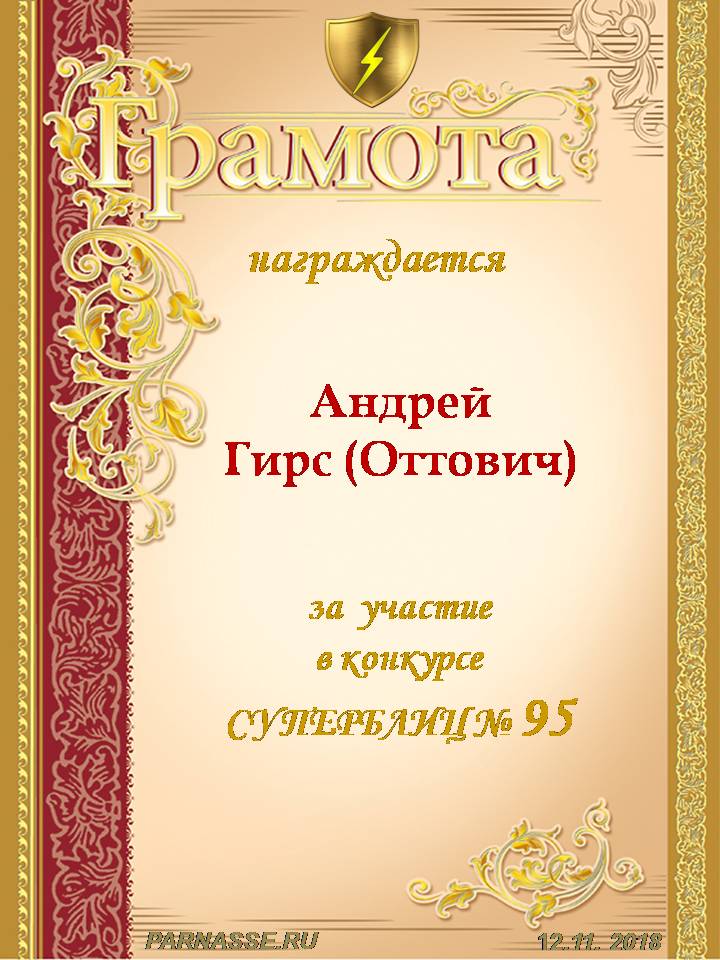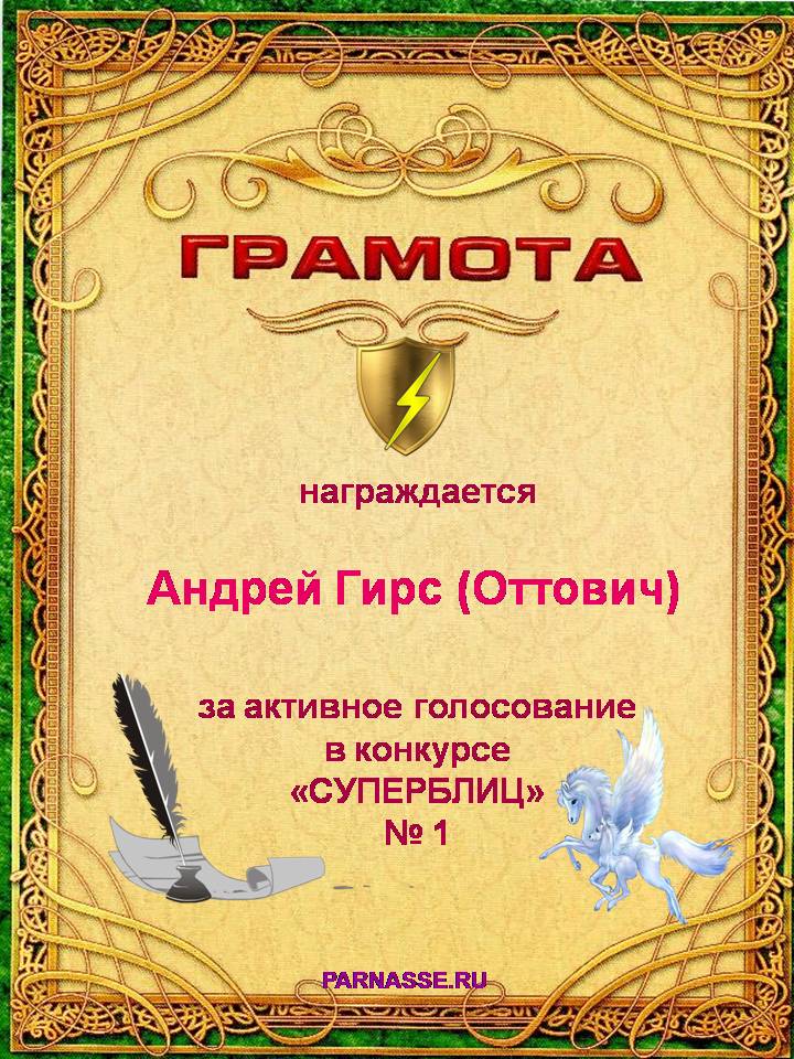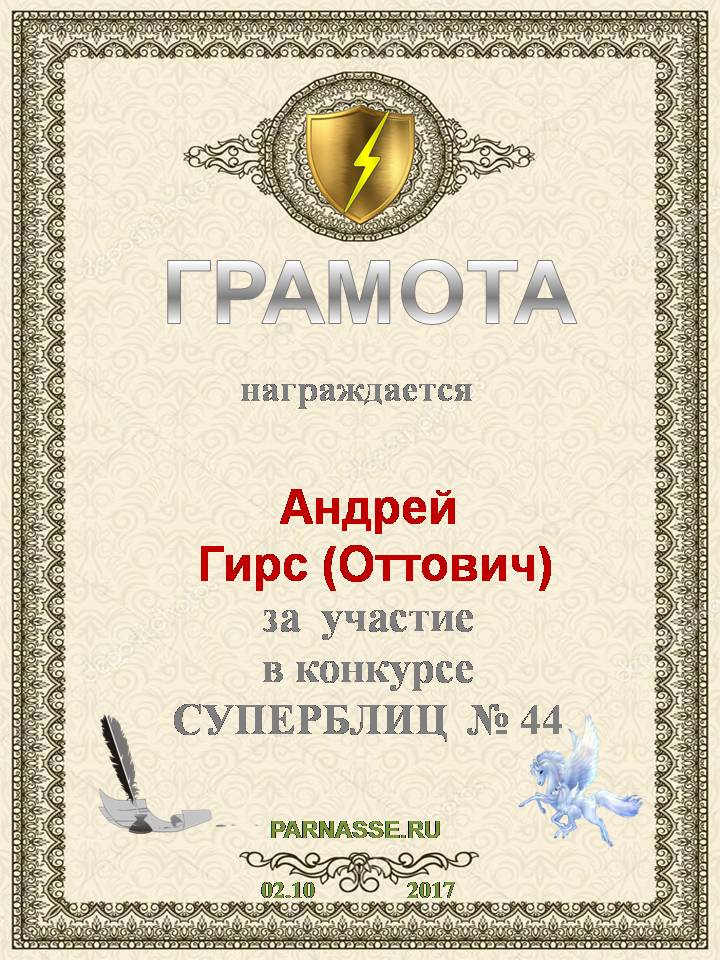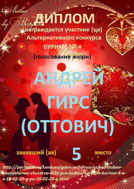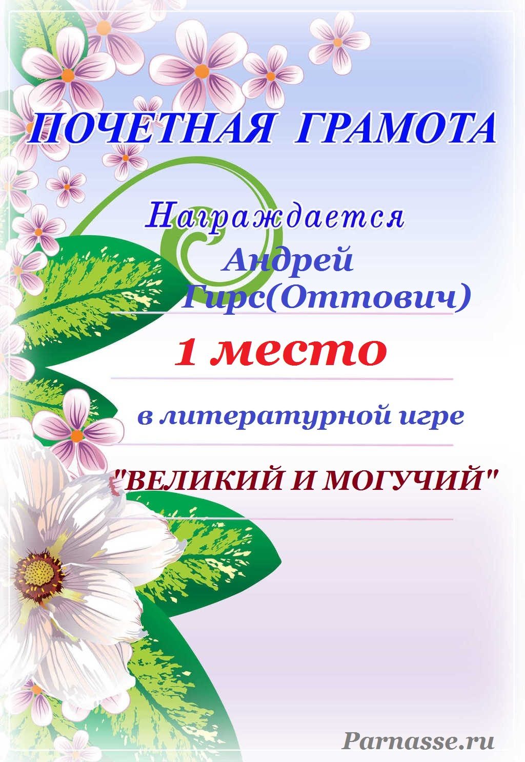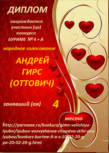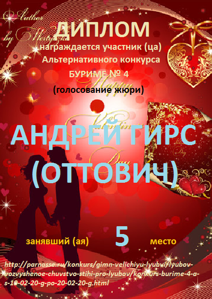 Грамота за 4 место в 109 конкурсе АКРОСТИХА (Альтернатива)! ПОЗДРАВЛЯЮ!
