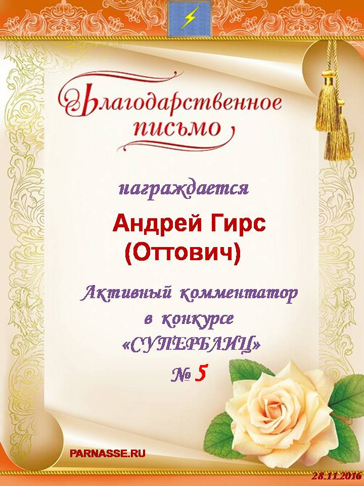 Грамота за 5 место в 120 конкурсе АКРОСТИХА (Альтернатива)! ПОЗДРАВЛЯЮ!