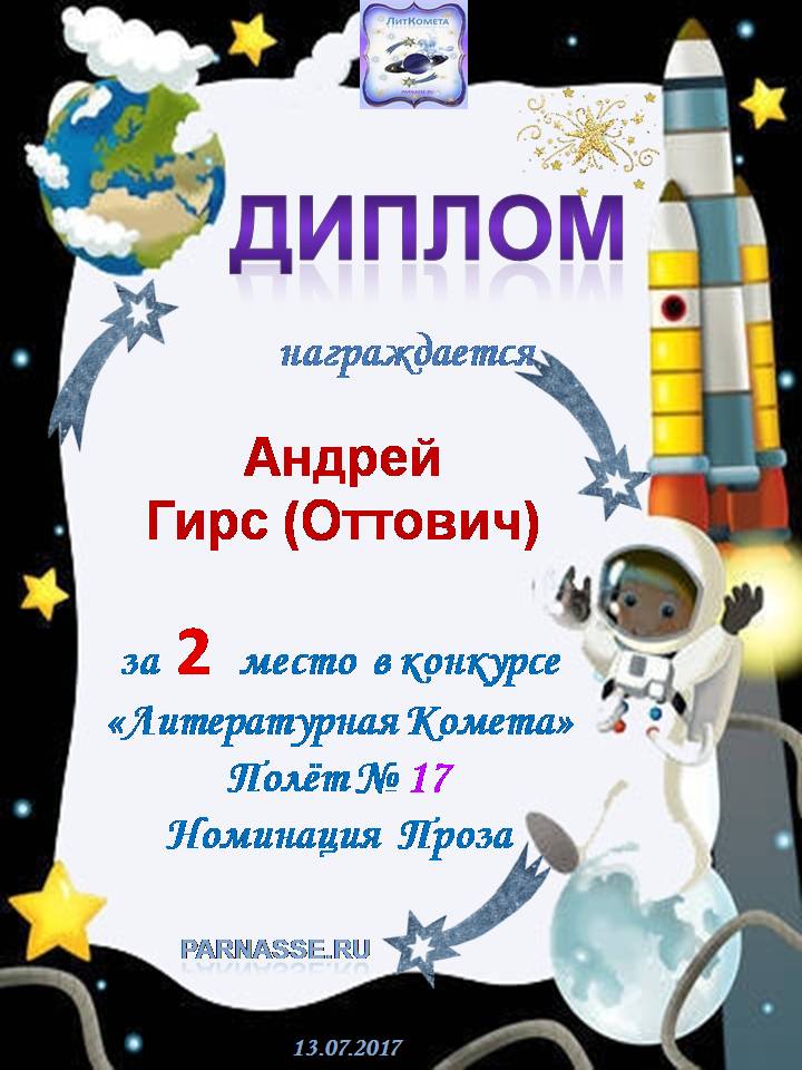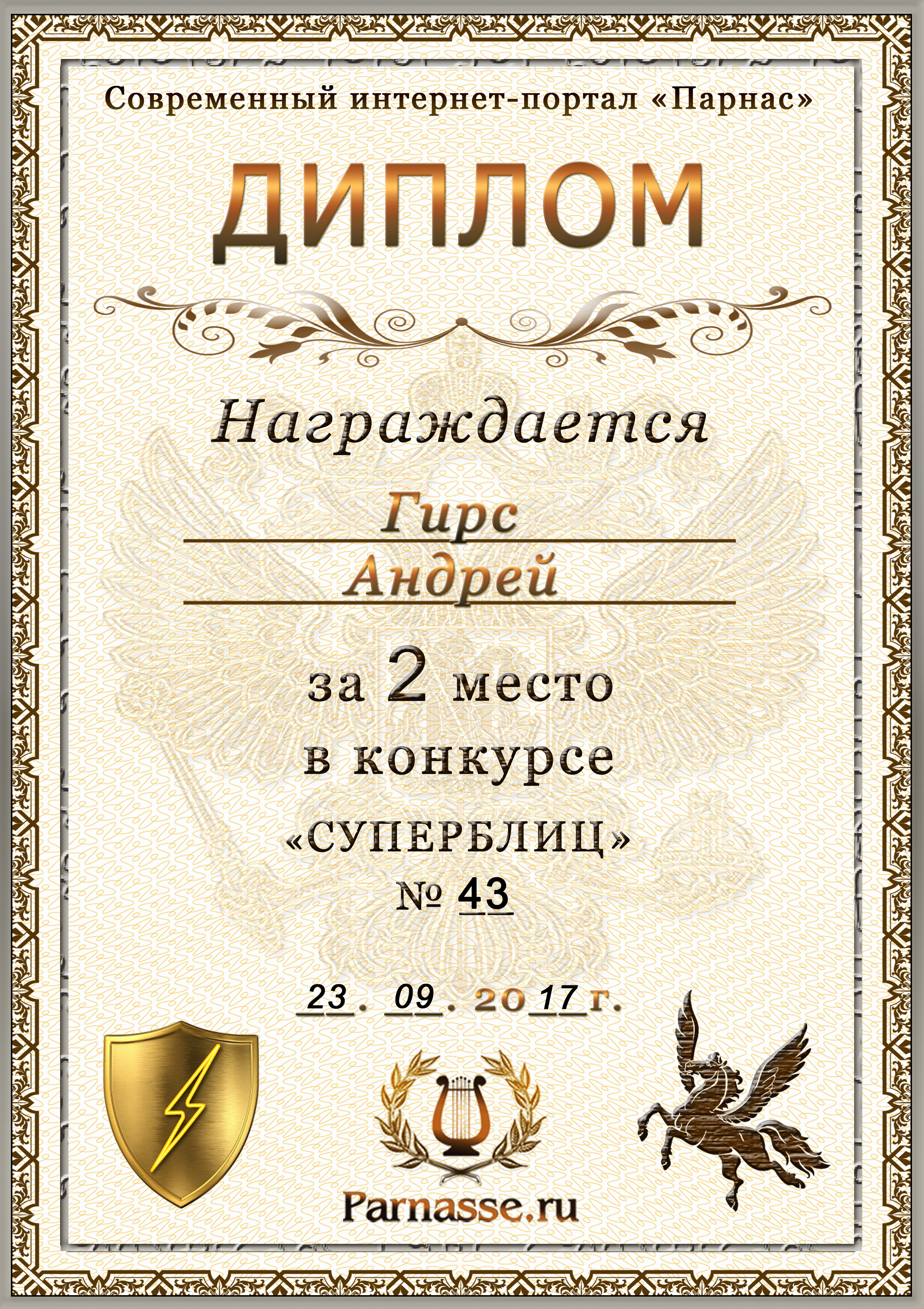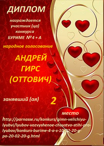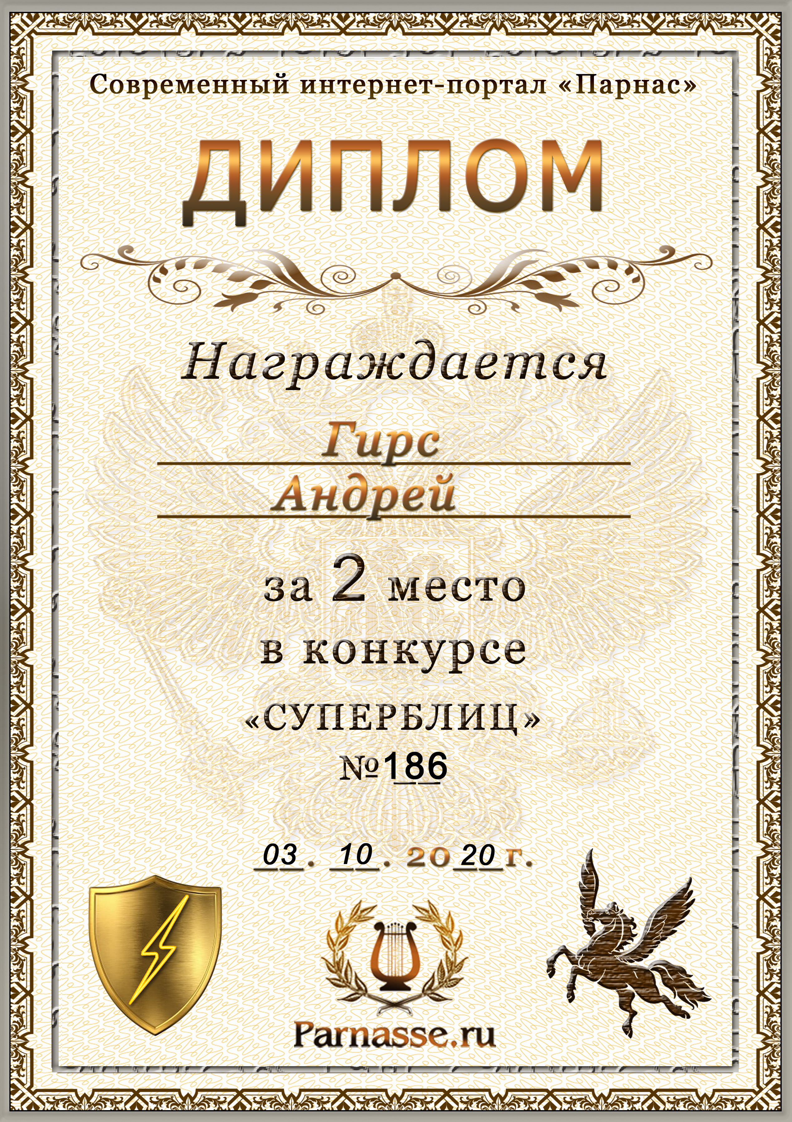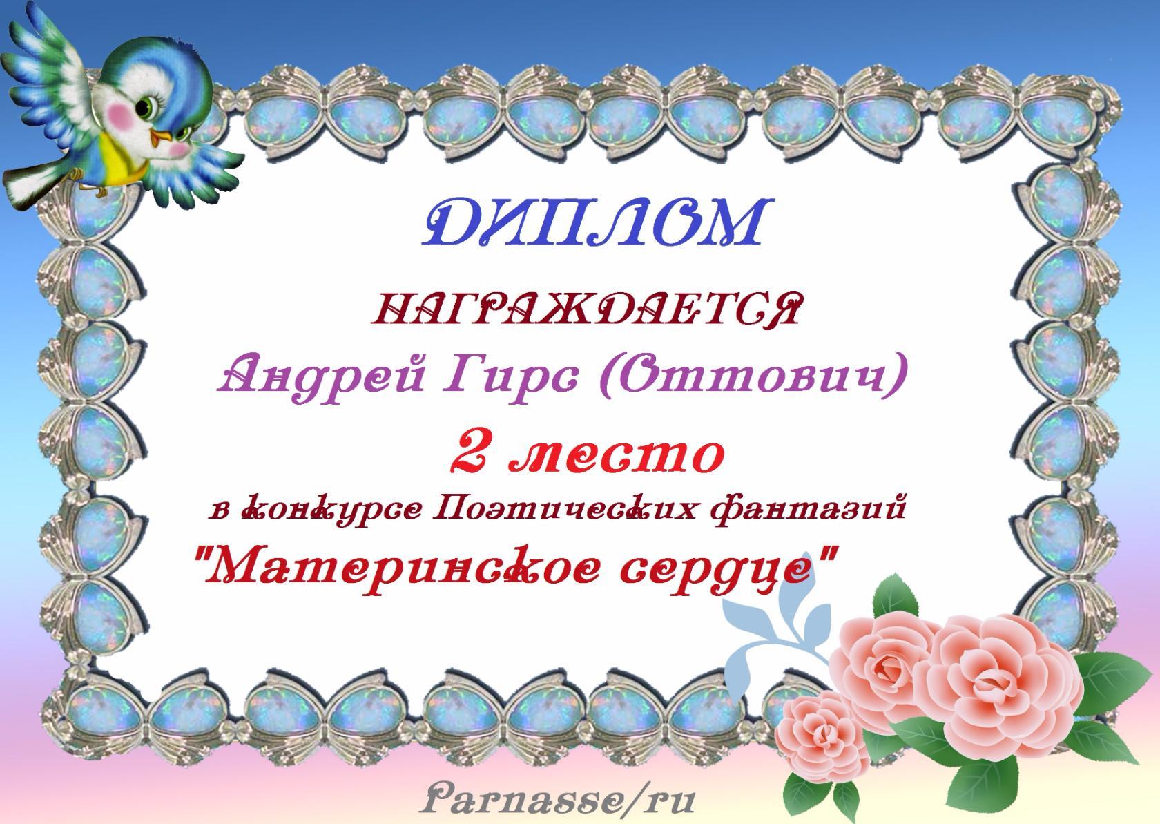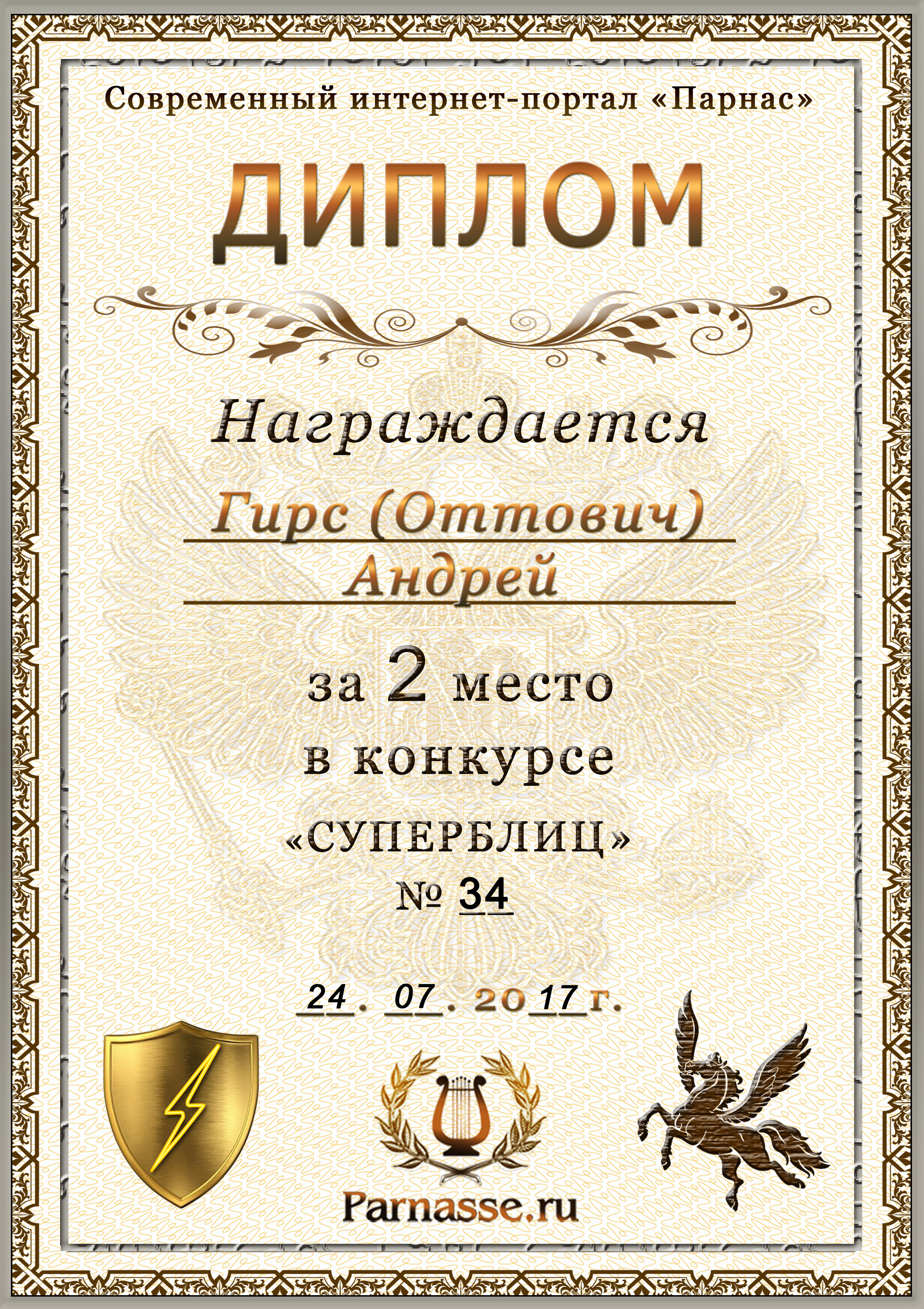 Диплом за 2 место в 109 конкурсе АКРОСТИХА (Альтернатива)! ПОЗДРАВЛЯЮ!