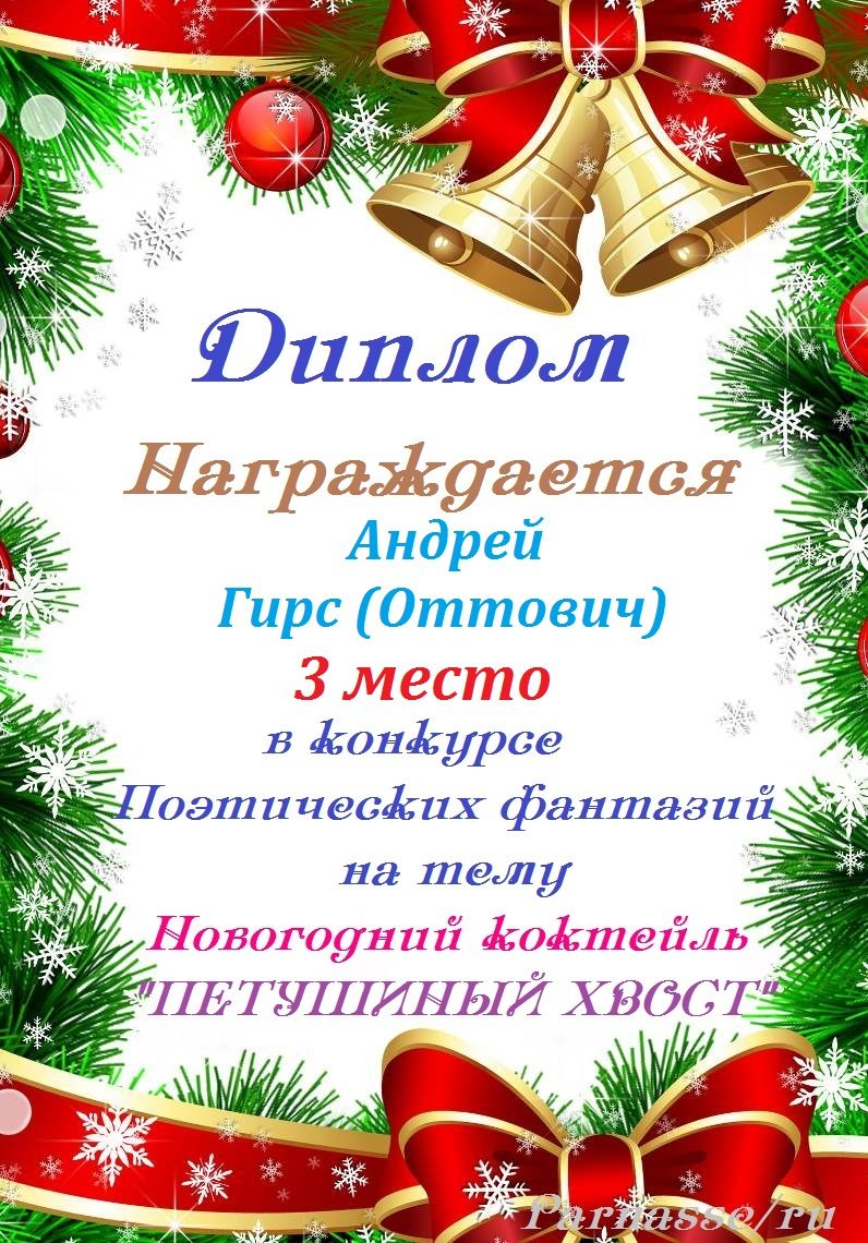 Диплом за 3 место в 115 конкурсе АКРОСТИХА (Альтернатива)! ПОЗДРАВЛЯЮ!